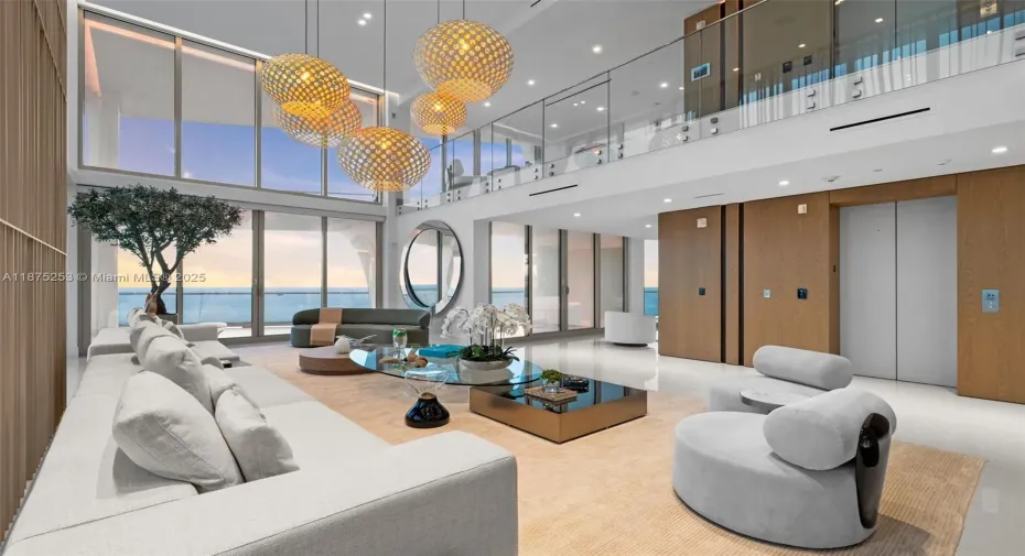 Welcome to Sky Villa 5105 at Jade Signature, a rare two-story residence in the sky curated entirely by Artefacto. Spanning over 6,500 SF, this 5-bedroom, 6.5-bath home offers soaring double-height ceilings, walls of glass, and seamless indoor-outdoor living with expansive terraces + service quarters. Every space is masterfully designed with bespoke finishes, custom millwork, and a private elevator. The oceanfront primary suite offers a spa-inspired bath and oversized dressing room, while a private elevator ensures effortless access. Residents enjoy resort-style amenities including beachfront service, world-class spa, fitness center, kids’ club, wine bar, valet, and full concierge. An unmatched lifestyle of elegance and ease awaits.