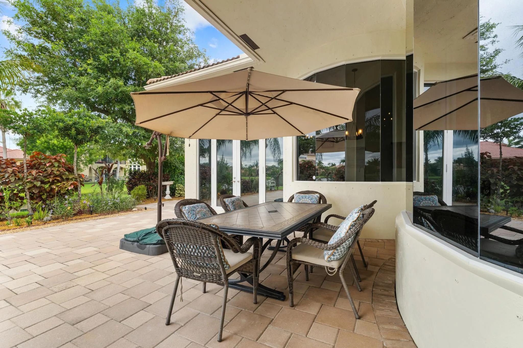 This elegant estate offers 4,179 sq ft with an open layout designed for both comfort and entertaining. Inside, the home showcases white marble countertops that flow seamlessly into the backsplash, updated flooring, and expansive living areas filled with natural light through oversized glass and arched windows. Beautiful French doors help create indoor-outdoor living through thoughtful design.The primary suite is a retreat of its own, featuring a European-style walk-around shower, jacuzzi tub, and dual sinks. Additional bedrooms provide flexibility for family, guests, or a private office.Outdoors, enjoy sweeping lake views from the extended patio with room for a pool and an outdoor bathroom. Located just minutes away from Turnpike, shops, golf, and so much more.