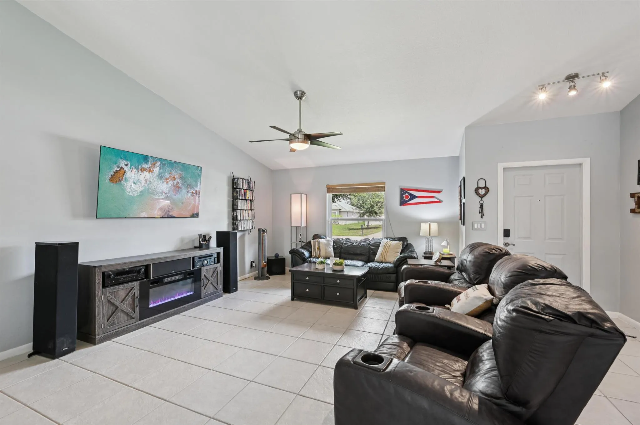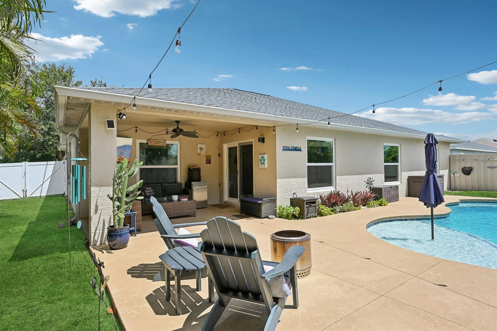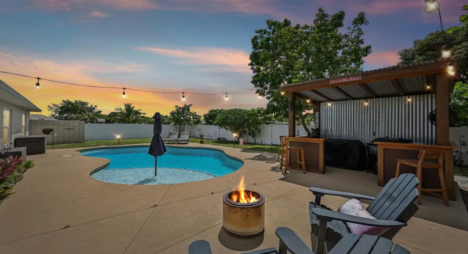 NO HOA | SALTWATER POOL | NEW ROOF (2022) | NEW A/C (2025) | ENERGY-EFFICIENT WINDOWS (2021) | WATER HEATER (2019) | GE WASHER & DRYER (2021) | OUTDOOR BAR | NEAR I-95 & TURNPIKE Welcome to your own slice of Florida! This CBS home offers nearly 2,000 sq ft of open-concept living with views of the sparkling saltwater pool. The fully fenced backyard (new vinyl 2024) features a covered patio, lounge seating, bar, and a cooking station for your grilling and smoking needs. Inside, enjoy a SPLIT FLOOR PLAN, spacious primary suite with TWO WALK-IN CLOSETS, LUXURY LAMINATE flooring, updated lighting, a DEDICATED LAUNDRY ROOM, and garage with BUILT-IN STORAGE. Located just minutes from I-95, the Turnpike, boating, dining, shopping, Mets spring training, and near 30 Florida beaches.