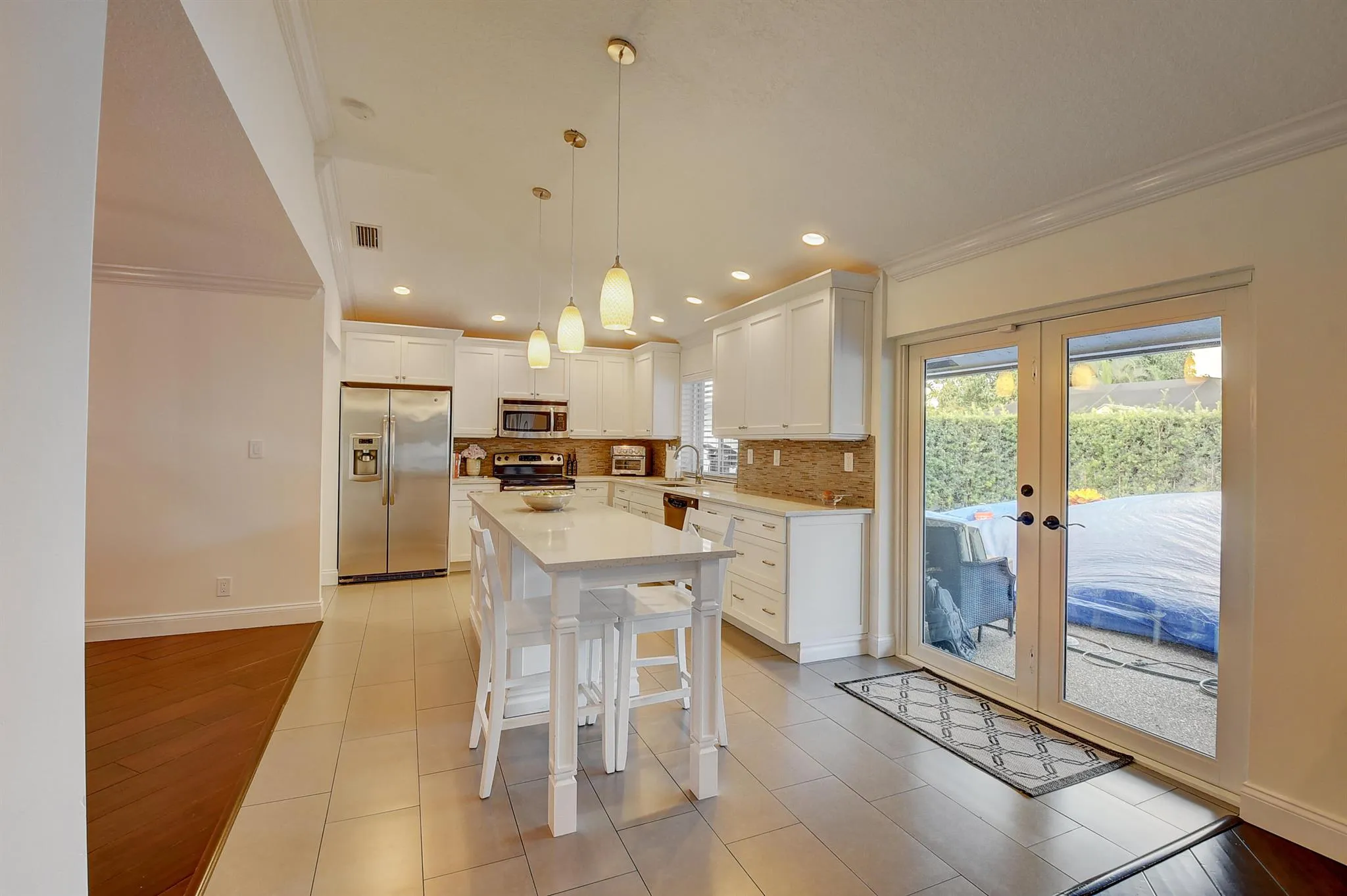 Welcome Home! Come see this beautiful 4 bedroom, 2 bath, 2 car garage open concept pool home for rent. With bamboo hardwood floors, high ceilings, crown molding, 6 inch baseboards, this home is a beauty all the way around. Nestled in a quaint neighborhood with excellent schools and conveniently located near shopping, restaurants, beach, etc, look no further! The kitchen has white shaker cabinets, cambria quartz countertops and stainless steel appliances. See the welcoming pool from every living space and the primary bedroom. Primary bedroom has high ceilings, large walk-in closet, double vanities and a spacious shower. Indoor laundry. Covered patio, large backyard and beautiful pool. Lawn and pool maintenance included!