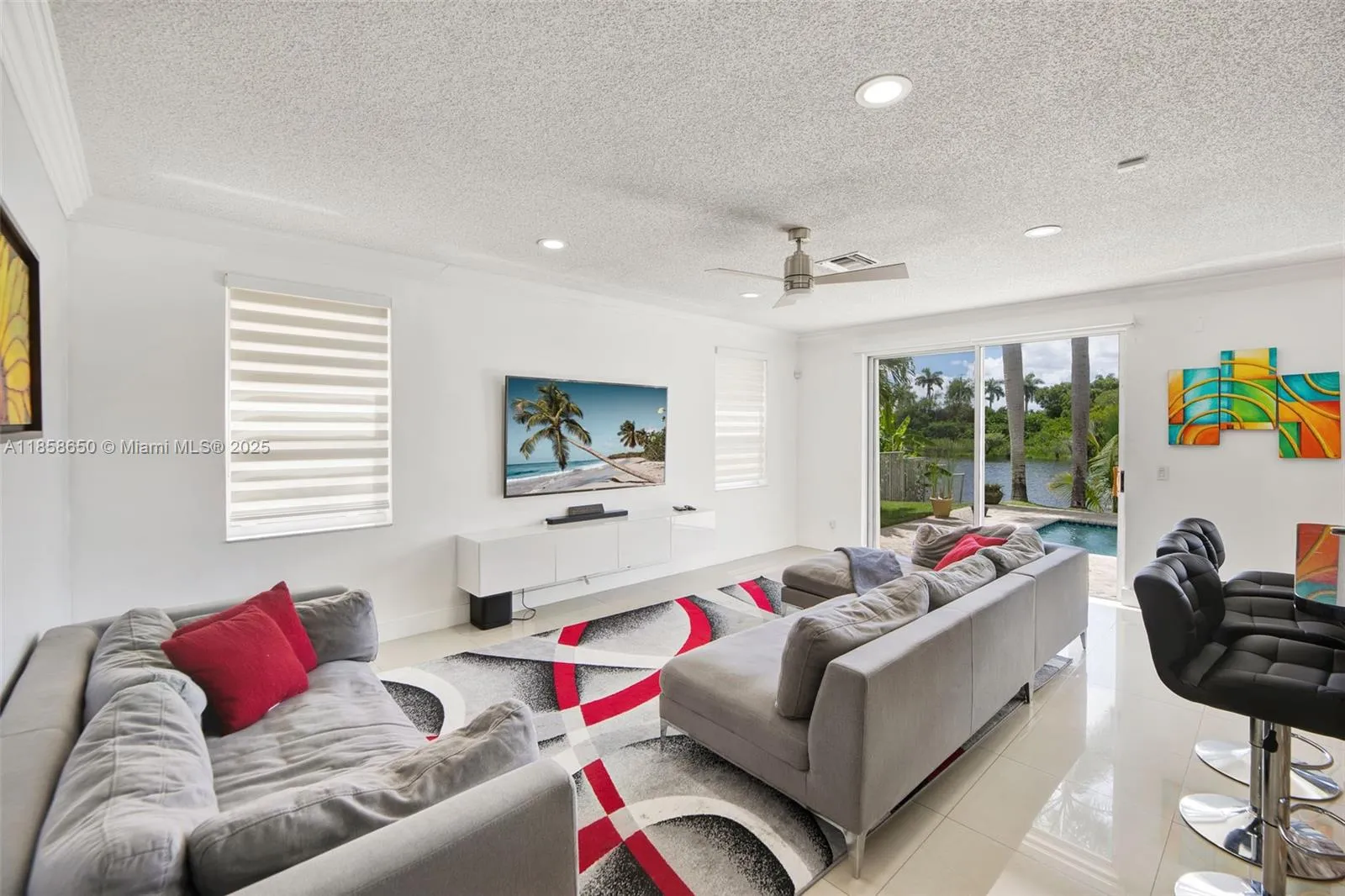 Stunning lakefront home with a private pool and deck, perfect for enjoying serene water views and unforgettable sunsets. This 4BR/3BA residence offers bright, open living areas filled with natural light. The kitchen features granite counters, stainless steel appliances, and ample cabinetry, opening to a spacious family room with direct pool and lake views. A versatile downstairs office is ideal for working from home. The primary suite includes dual walk-in closets and a spa-like bath. Accordion shutters, 2-car garage, and a prime Miramar location close to top schools, parks, dining, shopping, and major highways.