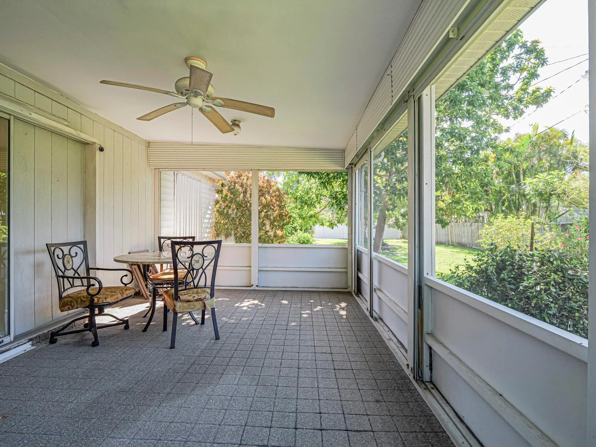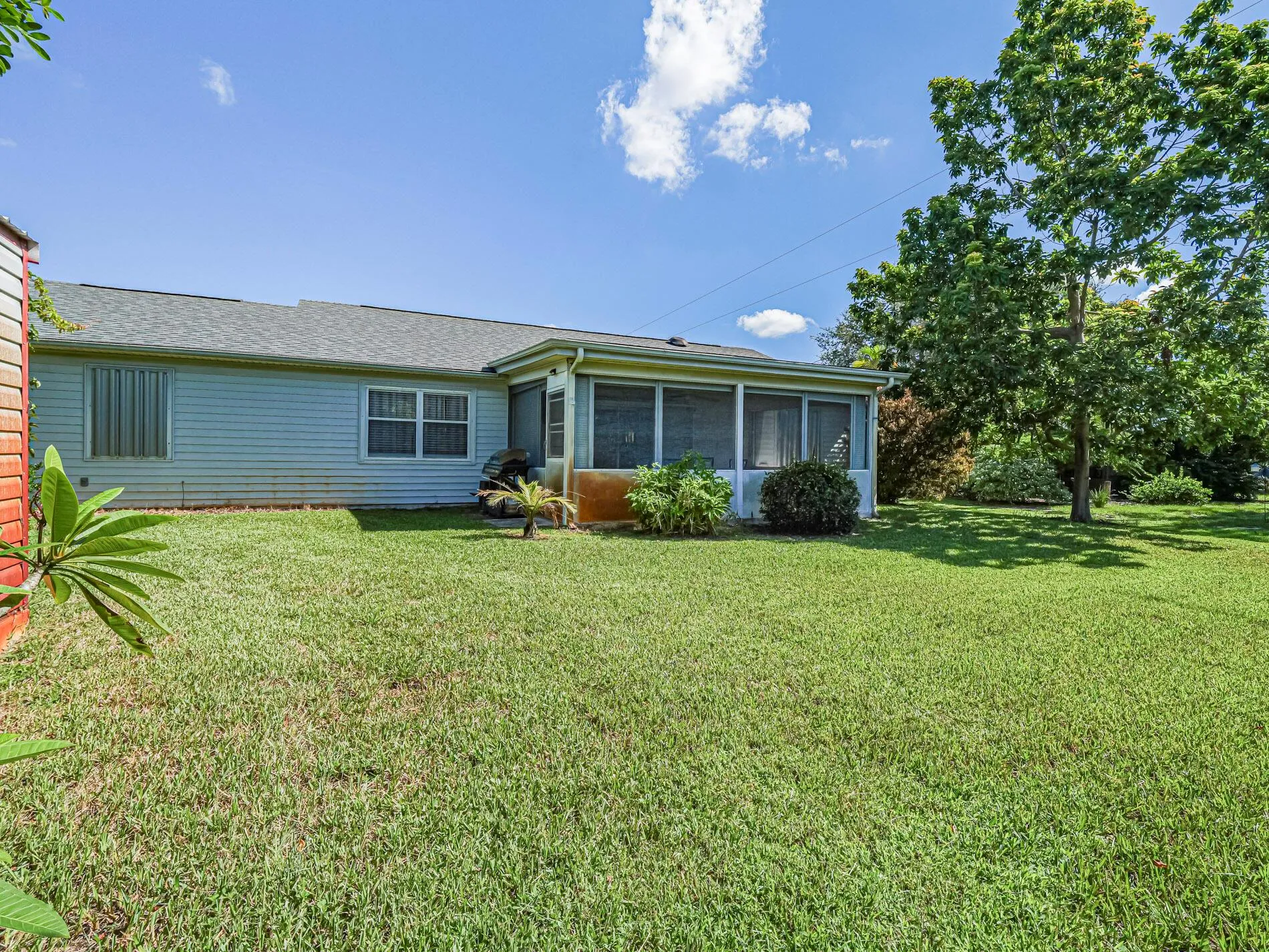 This is a must see! Welcome to this move in ready 3-bedroom, 2.5-bathroom home featuring a beautifully manicured yard with a 2 car garage with screen door. Enjoy the convenience of being minutes from shopping, dining, parks, and the beach. The backyard features fruit trees and a shed with a ramp. The living room, dining area and family room offer plenty of space for relaxation and hosting guests. Washer and dryer are included. The home boasts a screened front porch with tile flooring. The kitchen is equipped with granite countertops, and the living room, kitchen, and family areas all have tile flooring. The master bathroom has been recently renovated. 2023 roof. Screened back porch with pull-down hurricane shutters. This home is full of potential!