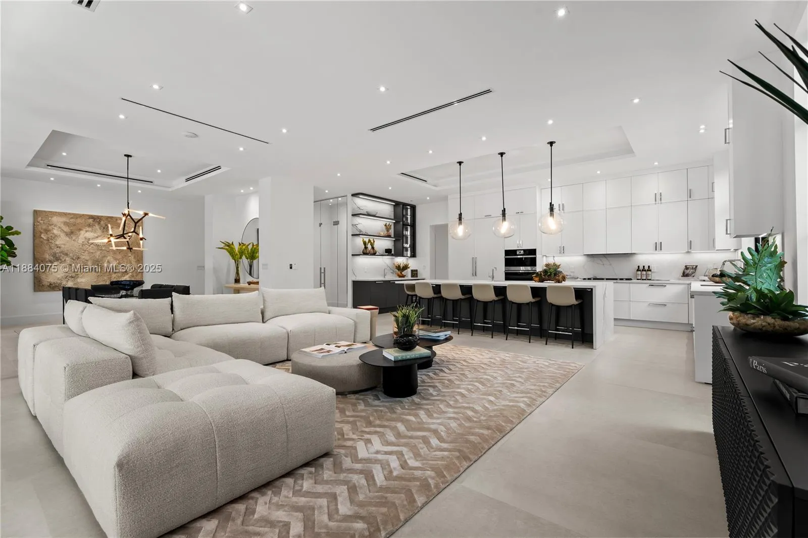 Brand-new construction by Pacheco Architecture, this contemporary-modern estate offers 6 beds plus office with 7.5 baths total 7,142 sq. ft. of construction. The grand entry with double-height ceilings opens to expansive living spaces. Massive floor-to-ceiling sliding doors lead to a covered terrace w/ fully equipped outdoor kitchen & private pool. The chef’s kitchen features top-of-the-line appliances, and an elevator connects to 4 upstairs bedrooms, including a luxurious master suite with private balcony, spa-like bath, and custom LED-lit closet. Features include a wine cellar, wet bar, 3-car garage, smart home tech, gates & lush landscaping. Perfectly located near top Miami schools, shops, dining and entertainment. Home is ideal for upscale family living and entertaining.