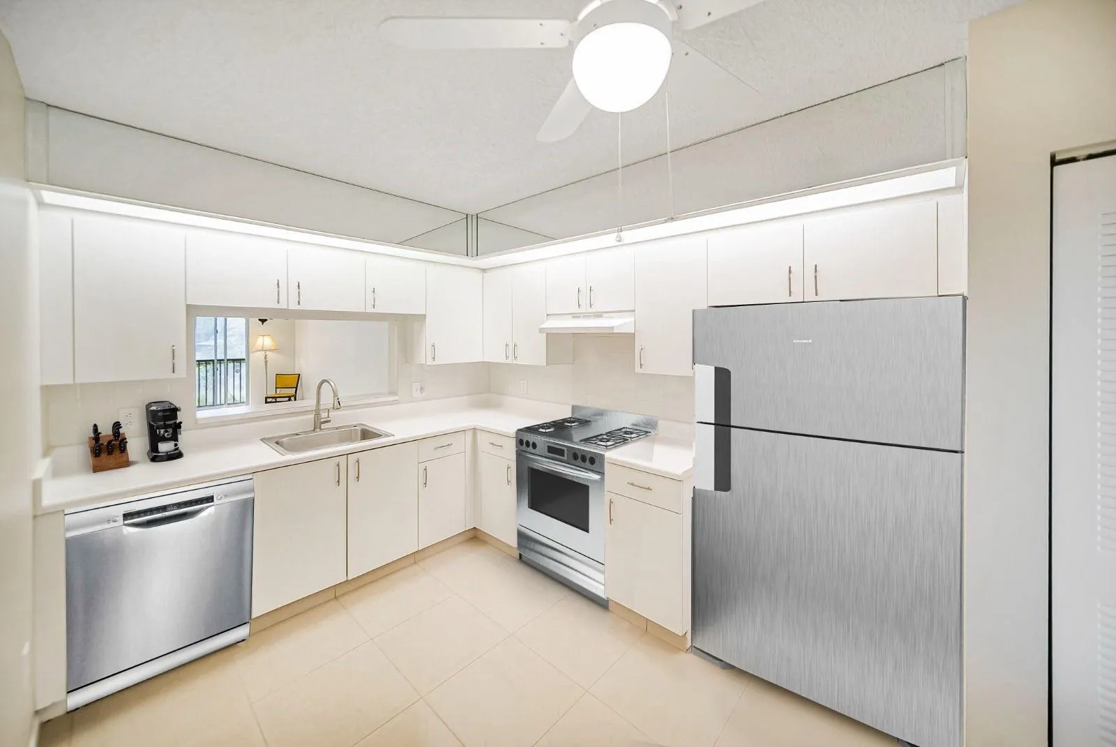 Come see this beautiful 55+ condo in Century Village. Features include 2 bedrooms, one and a half baths, located on the second floor. Brand new stainless steel appliances to be installed prior to closing. Porcelain tile throughout the unit, screened in patio, washer and dryer in the unit, newer ac. Plenty of amenities to enjoy including: a beautiful clubhouse, social clubs & events, 8 swimming pools resort-style, 2 fitness centers, 24-hour gated security, tennis courts, billiards, movie theater, live shows, complimentary bus transportation, pharmacy and café in the community, and golf course access. This unit is situated right next to one of the community pools. Priced to sell. Don’t miss out on an amazing opportunity.