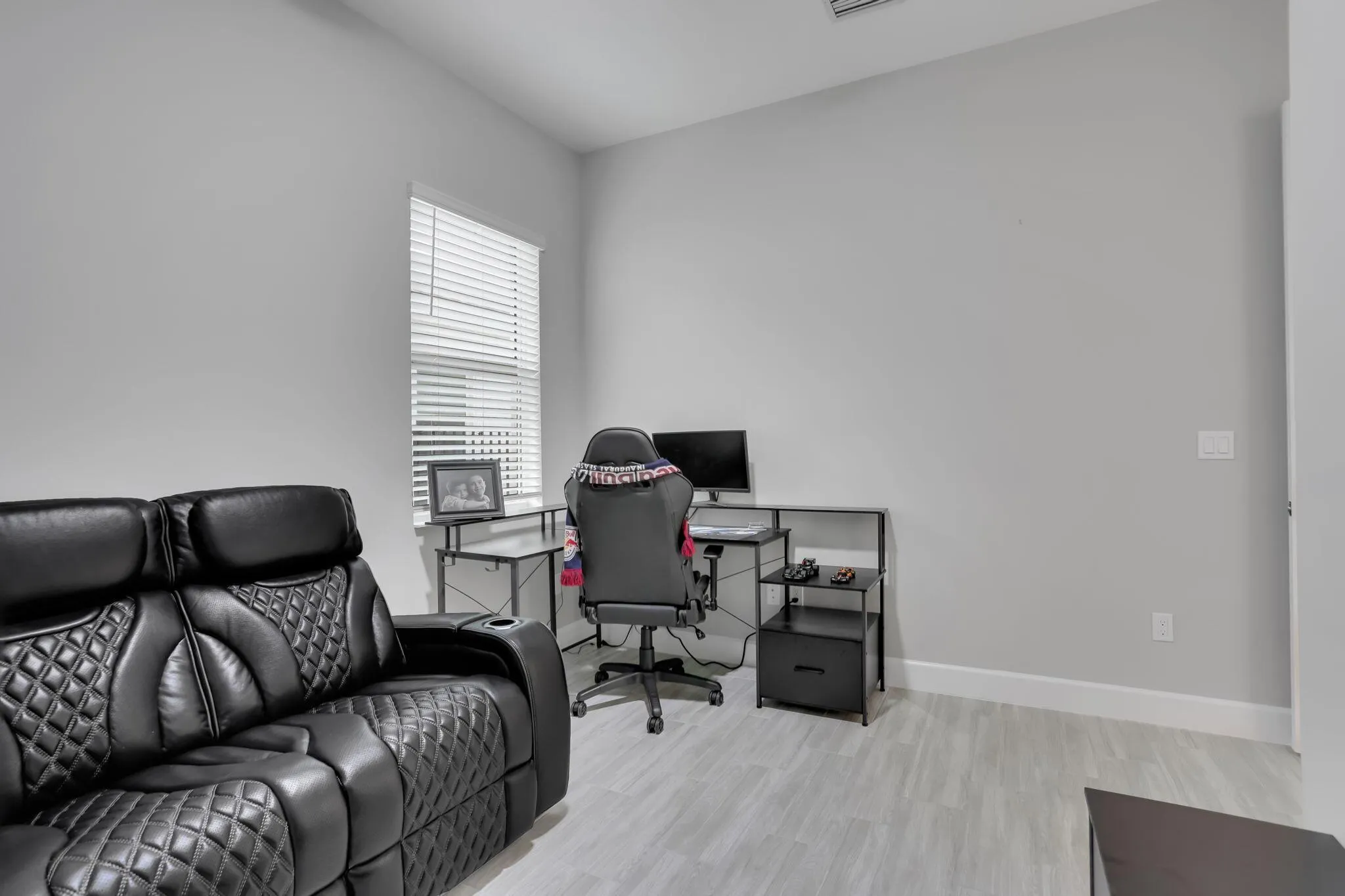 Welcome to this stunning 2024-built single-family home offering 3 bedrooms plus a den, 2.5 bathrooms, and a spacious 2-car garage with upgraded epoxy floors. This home is spacious, bright, and welcoming, featuring a split floor plan with generously sized bedrooms and loads of builder upgrades throughout. The primary suite includes two walk-in closets and a large, beautifully designed master bath, creating the perfect retreat. The heart of the home is the bright white kitchen complete with stylish backsplash, stainless steel appliances, and plenty of storage.Additional upgrades include, in-ground split sprinkler system, custom roll-up blinds, and roll-up screens for the patio where you cen see out but not in–providing privacy while still allowing you to enjoy the view.