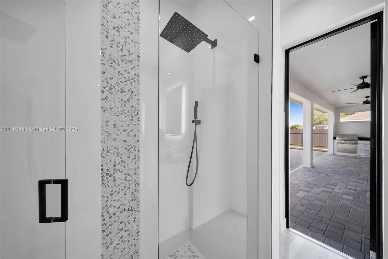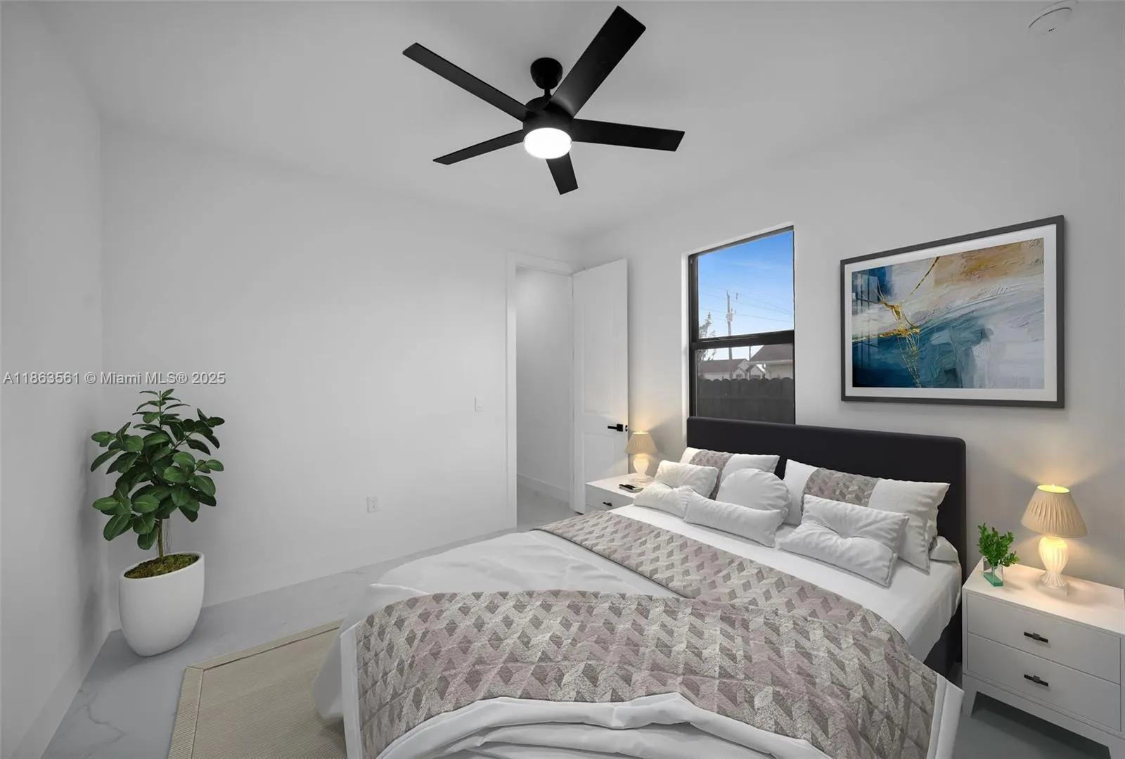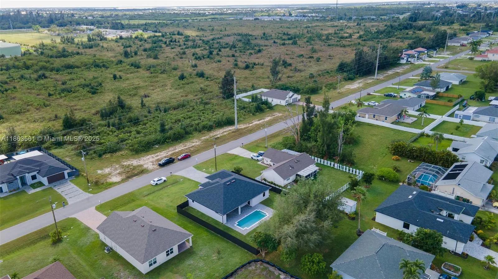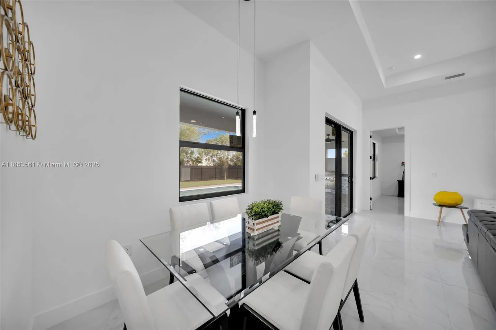Experience modern Florida living in this 2024 new construction 4-bedroom, 2-bath home. The primary suite features dual walk-in closets and a tiled stand-up shower, while the second bath has backyard access. Enjoy a private saltwater pool with new heater. Porcelain tile flooring flows throughout, complemented by a 2-car garage, 4-car driveway, and storm-impact windows and doors. The chef’s kitchen boasts a Calacatta Quartz waterfall island, high-end appliances, and pop-up wireless charging. LED lighting, ceiling fans, and a dramatic living room fan enhance comfort. Step onto the lanai with a fully equipped outdoor Florida kitchen and lush landscaping with sprinkler system—luxury, style, and function all in one.