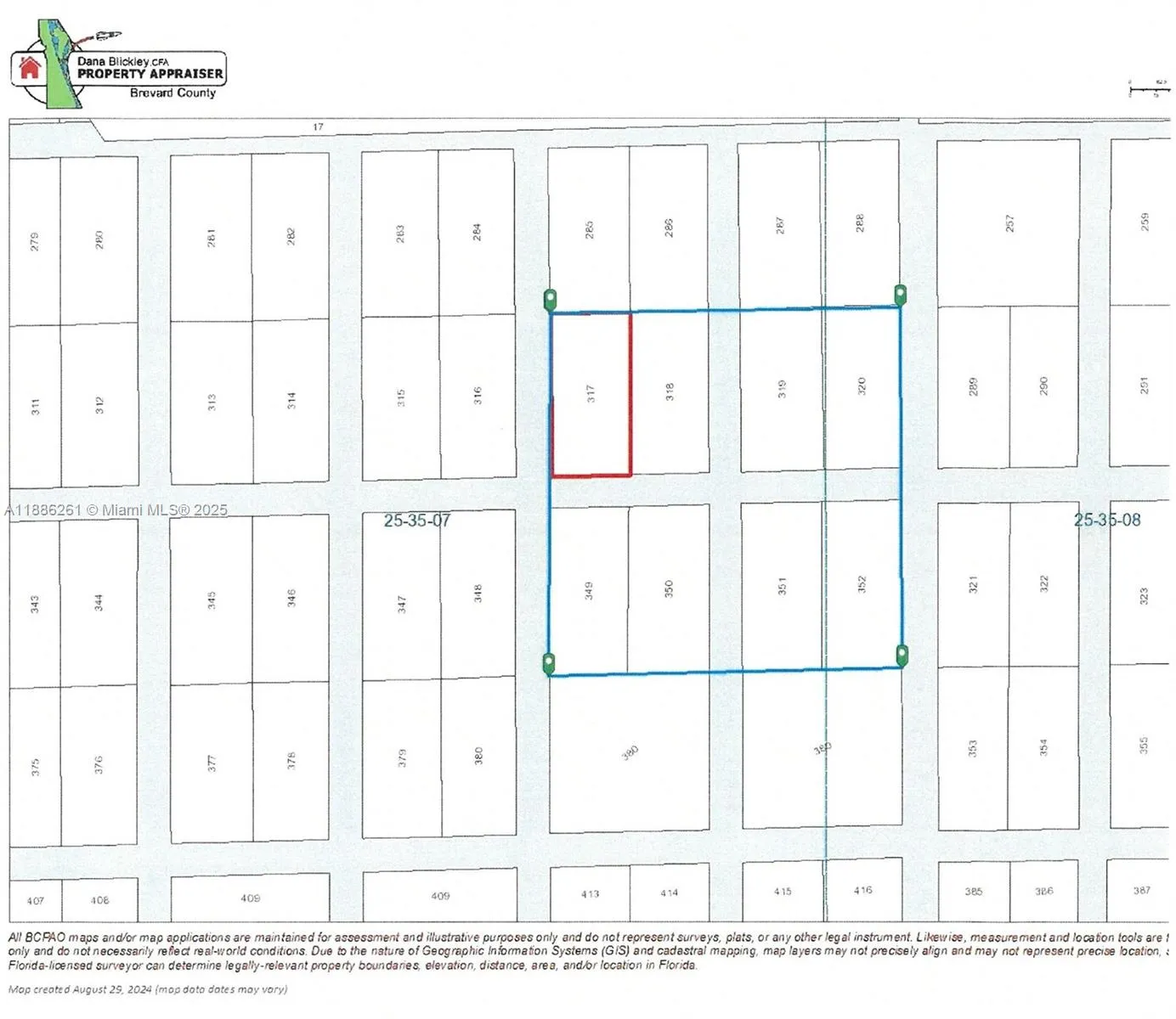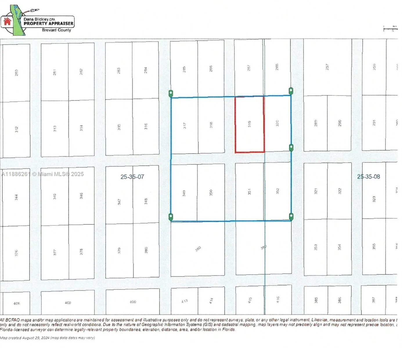 This land is zoned GU with a property use of 0010 – VACANT RESIDENTIAL LAND (SINGLE FAMILY, PLATTED). There is no road access to the land. There are 8 parcels being sold all together. Brevard County Account #’s: 2500349, 2500350, 2500351, 2500352, 2500365, 2500366, 2500367, 2500368