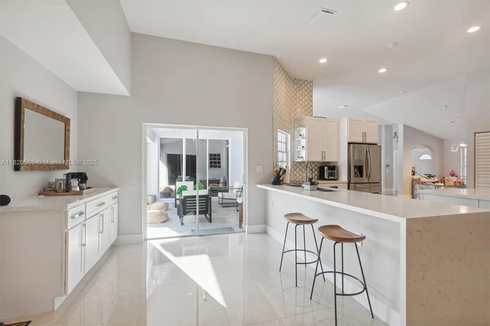 Experience living in this exquisite renovated ONE-STORY home featuring 5 beds, 3.5 baths & open living areas with HIGH ceilings in Weston’s prestigious North Lake Community. The expansive open floor plan features modern tile floors, family room, living & dining rooms offering plenty of space for entertainment. Boasting stunning eat-in kitchen w/ S.S appliances & granite countertops. Step in the master suite accompanied by a full en-suite bath & walk-in closets w/ tub/shower. Across, 2 beds await w/ 2 1/2 bath & the 5th beds is perfect as an office. Step outside to your cozy fenced, partially roofed patio, tiled w/ artificial grass, POOL, Cabana BATH & RENOVATED DECK ideal for outdoor relaxation. Pool-fenced. Steps away from the CUL-DE-SAC.