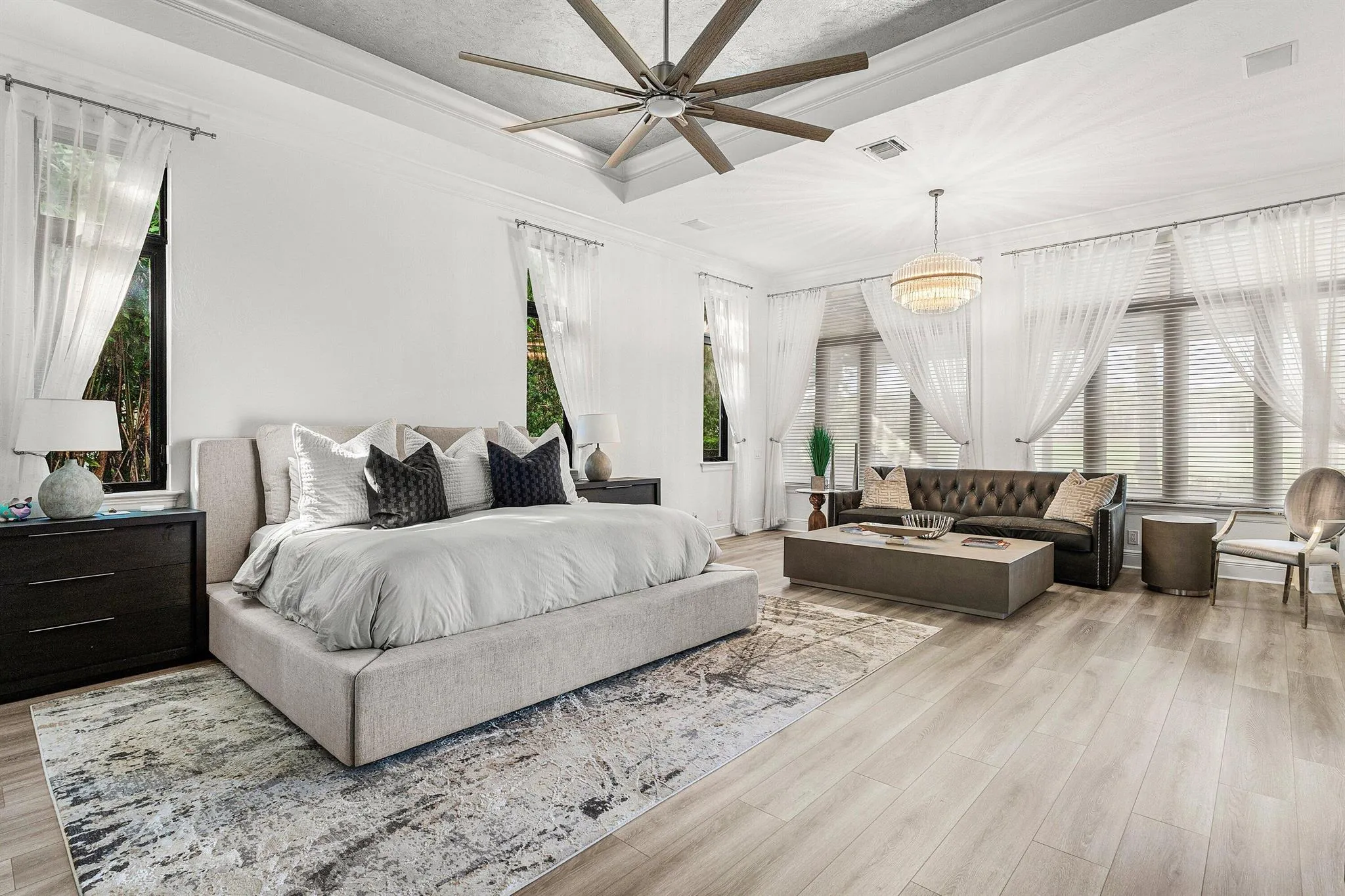 ONE-OF-A-KIND ESTATE IN PARKLAND GOLF & CC W/ STUNNING FAIRWAY & LAKE VIEWS. Expanded Minorca model featuring 6BD, 4/2BA on oversized lot. Primary on main floor w/oversize closet. Remodeled & upgraded. new quartz kitchen counters, double oven, white cabinetry, SS appliances, custom wood wall unit, marble in family room, built-in bar, new flooring in main living areas, contemporary fixtures & window treatments, coffered wood ceilings, wood stairs w/ wrought iron rails, & 2 balconies.Resort-style outdoor living w/ remodeled pool & patio, marble pavers, fire pit, summer kitchen. 6th bedroom doubles as game room or 2nd Primary. Generator &NEW ROOF. Parkland Golf & CC offers world-class amenities: 10 tennis courts, 3 restaurants, full-service fitness, child care, pickle, basketball,& 3 pools