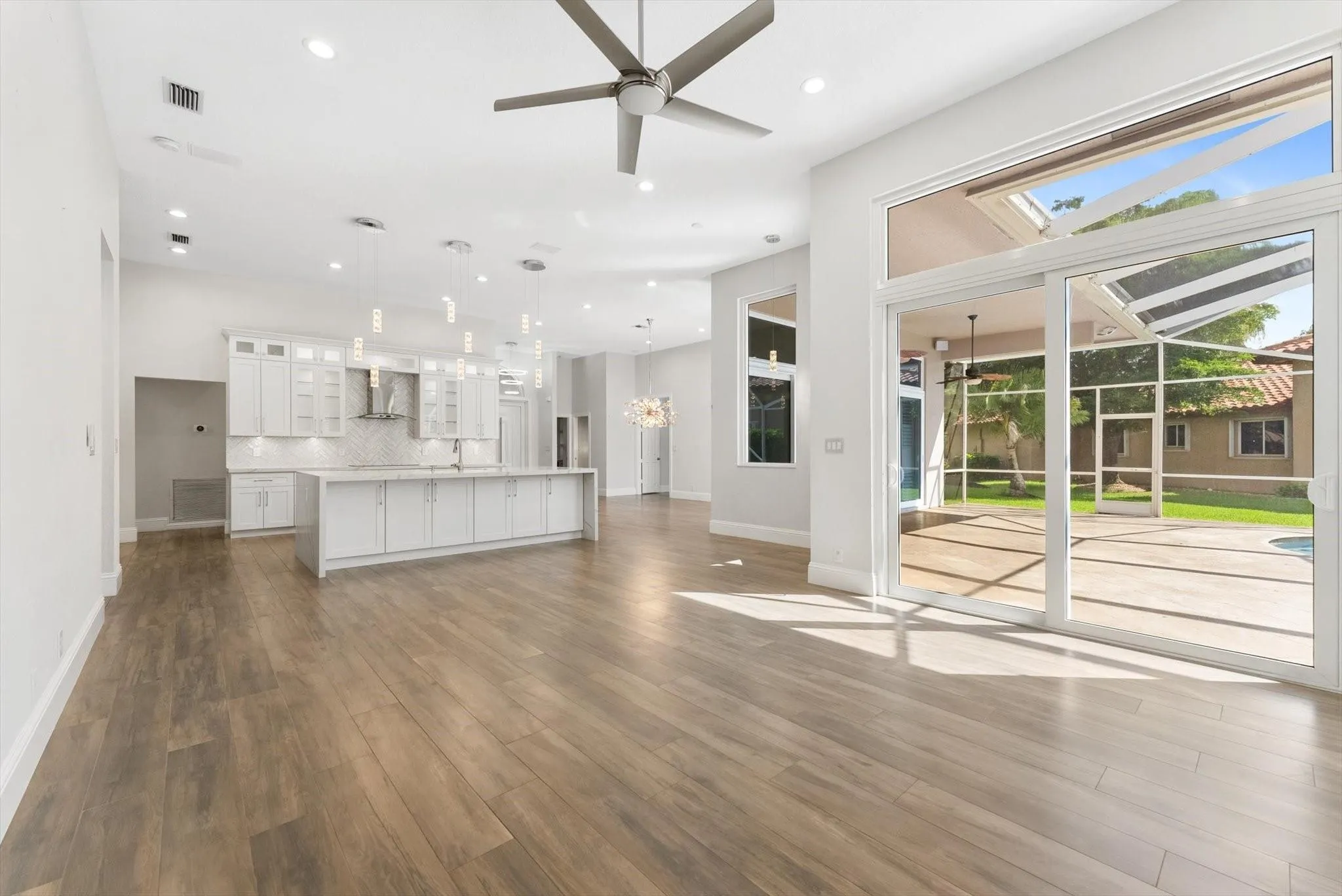 Completely reimagined & impeccably renovated with the finest materials. A sophisticated, contemporary oasis tailored for Florida’s seamless indoor/outdoor lifestyle. Walls of impact windows & doors flood the space with natural light & offer stunning views of the pool & lake. At the heart of the home, a show-stopping white kitchen takes center stage, featuring a dramatic waterfall island, quartz counters, top-of-the-line appliances & a striking glass tile backsplash. The Primary suite is impressive in size & boasts a spa like bathroom, several large closets with cabinetry & serene water views. Outside is an expansive screened porch with a heated saltwater pool with a spa & full service summer kitchen. Other offerings: Wood Like tile thruout, gorgeous lighting, Tesla charging station & more.