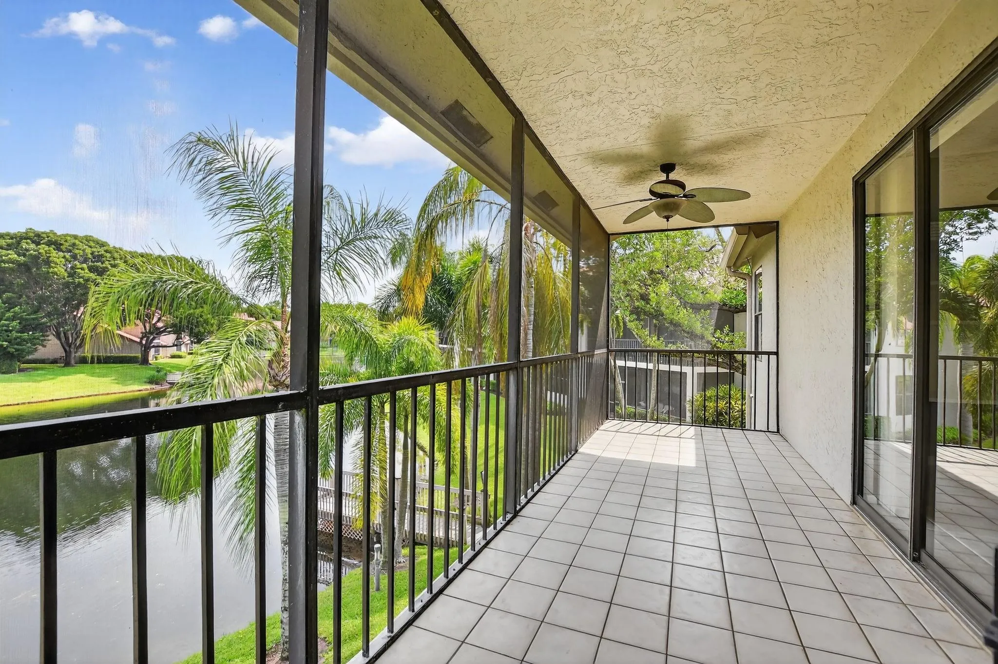 Boca Raton Condo living at its finest! Desirable 3-bedroom condo in Coach Houses of Town Place II offers direct lake and fountain views, open kitchen with granite countertops and large pantry, tile floors throughout, extra spacious master and ensuite bathroom, spacious bedrooms with updated bathroom, utility room w/washer and new dryer, ample closet storage, newly painted 1-car garage. Located on the 2nd and top floor, close to the community pool. Conveniently close to A+ Schools, I-95, FL Turnpike, Town Center Mall and Mizner Park in Boca Raton. Water and cable included. Unfurnished.