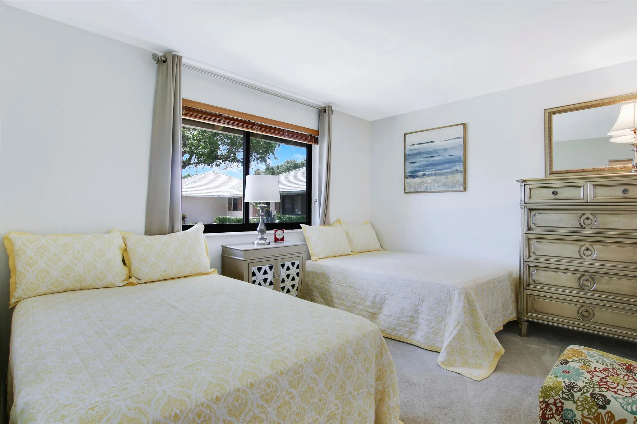 So Cozy! This renovated 2/2 cottage has all the comforts of a single family home. Steps to the Club Cottage Pool and Pavilion. And cross the Cottage Bridge to the PGA National Resort, Restaurants and Spa. King bed in primary and two full beds in the guest room. Turnkey with a Washer/Dryer. Electric; Wifi, Basic Cable and Water included in-season. The Mirasol/Publix shopping center is across from the PGA entrance. The Gardens Mall and world-class dining, down the street and around the corner. The Club Cottages are known for their lovely walking paths that begin at your front door. Palm Beach Island in twenty minutes. PBI airport in fifteen minutes.