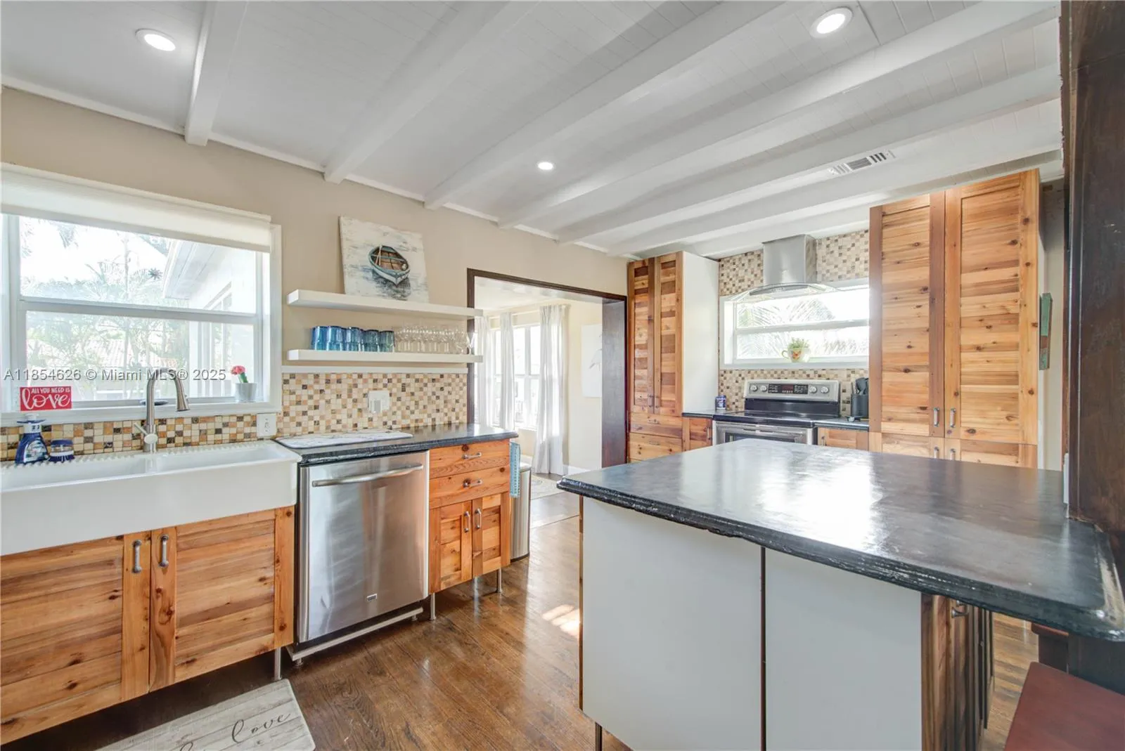 Welcome to this lovely 2 story SFR on an oversized 7407 Sq ft lot. Located in Hallandale Beach’s most coveted area, where it’s an easy bike ride to the beach, and less than a mile to Anchor Shopping Center and Gulfstream Park. This home has a very unique floor plan with 3 levels, where there are 2 bedrooms on the 1st level with a full bath and attached garage. The next level you will find a beautiful open concept kitchen with an island, a dining room overlooking the spacious backyard and a family room in the front with oversized windows. Upstairs is the private master’s suite with a spa-like bathroom and a walk in closet with a barn door. Impact windows throughout and in a very quiet, walkable neighborhood.