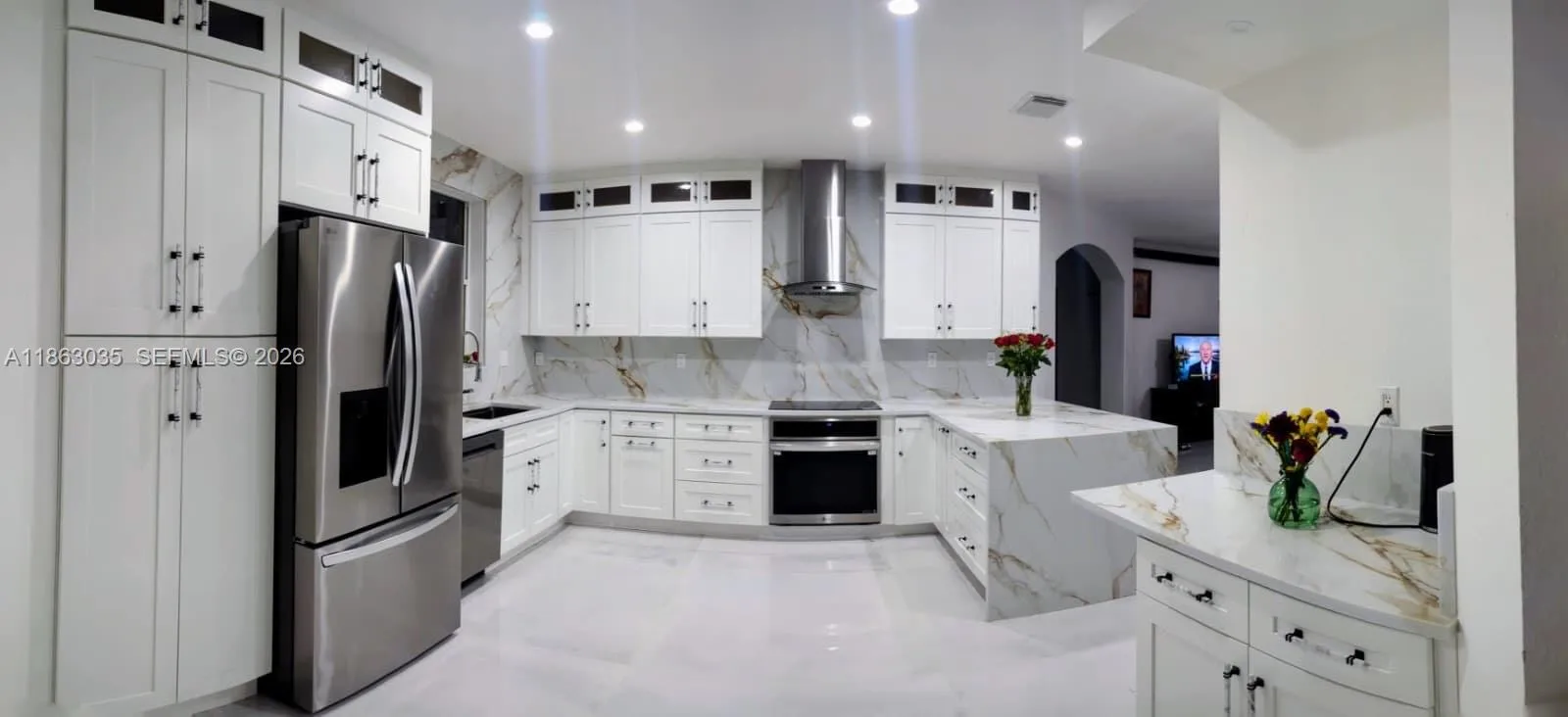 Endless Potential! UPDATED HOME! NEW KITCHEN COMPLETED JANUARY 2026! Perfect for Imaginative Buyer /Investor! This home Features 5/4 with 2 Luxurious Master Suites one with Private Balcony overlooking A Grassy Median (One Guest house / Studio /efficiency) and complete New kitchen with all New appliances – The perfect Prime location Nestled on oversize lot with 2 car garage & Parking for Boat / RV – A Sparkling Pool with New Miami Blue Diamond Bright Color – New Gazebo Roof, This home offers the perfect location for relaxation and the opportunities for generating substantial income from guest house / multiple efficiency units at the same time. Perfect Blend of comfort, elegance, functionality and Investment potential. Chandelier and entrance is not included in the sale. Home insurance cost $4619.