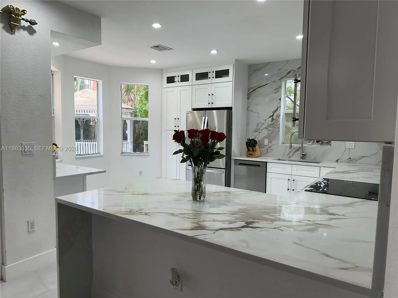 Endless Potential! UPDATED HOME! NEW KITCHEN COMPLETED JANUARY 2026! Perfect for Imaginative Buyer /Investor! This home Features 5/4 with 2 Luxurious Master Suites one with Private Balcony overlooking A Grassy Median (One Guest house / Studio /efficiency) and complete New kitchen with all New appliances – The perfect Prime location Nestled on oversize lot with 2 car garage & Parking for Boat / RV – A Sparkling Pool with New Miami Blue Diamond Bright Color – New Gazebo Roof, This home offers the perfect location for relaxation and the opportunities for generating substantial income from guest house / multiple efficiency units at the same time. Perfect Blend of comfort, elegance, functionality and Investment potential. Chandelier and entrance is not included in the sale. Home insurance cost $4619.