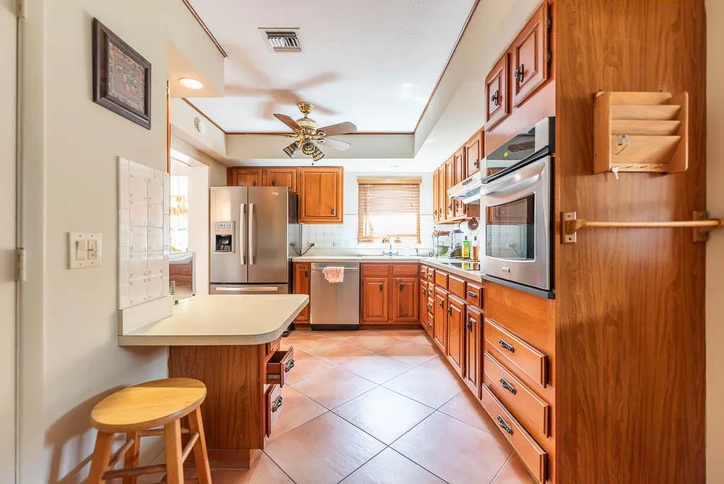 Discover the perfect blend of charm, style, and convenience in this stunning rental home, located in a non-HOA community just minutes from the Intracoastal and beautiful beaches. Set in a quiet neighborhood with unique character, this meticulously cared-for home features beautifully tiled living areas, 3 bedrooms with warm wood flooring. The spacious Florida room is fitted with hurricane-impact windows, and the family room comes complete with built-in shelving. This home boasts a gorgeous in-ground pool surrounded by brick pavers, tropical landscaping, and ambient lighting. With easy access to highways, shopping, and dining, this residence offers both peaceful living and unbeatable convenience.