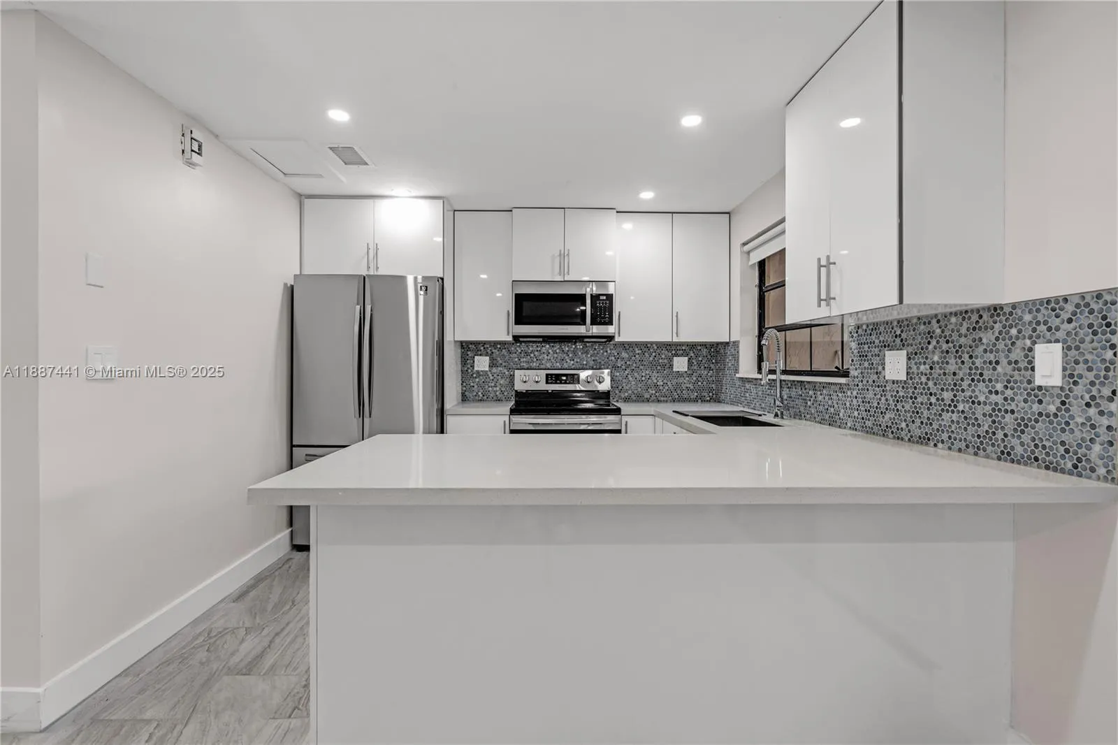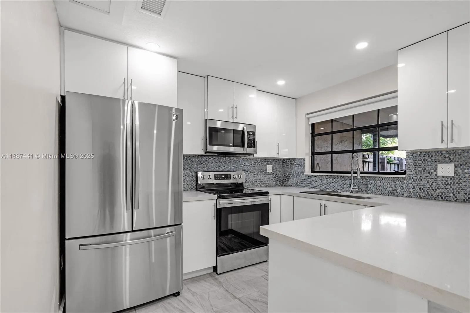 Stunning remodeled 3 bedroom 2.5 bathroom townhouse. This beautiful townhome features porcelain tiles downstairs and gorgeous laminate flooring upstairs. Modern kitchen with quartz countertops and stainless steel appliances. Washer and dryer inside unit.