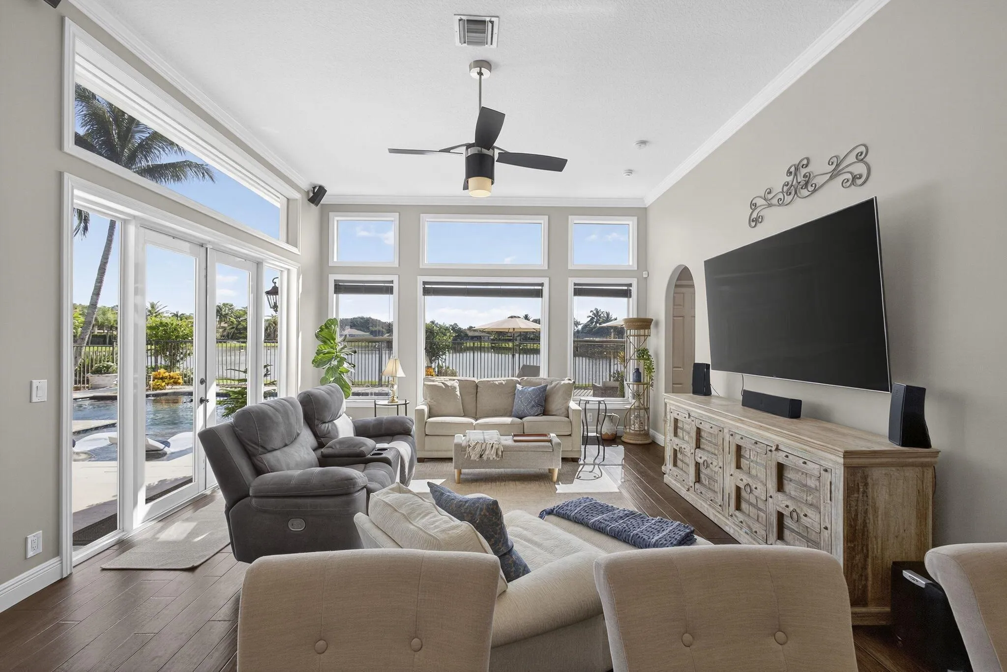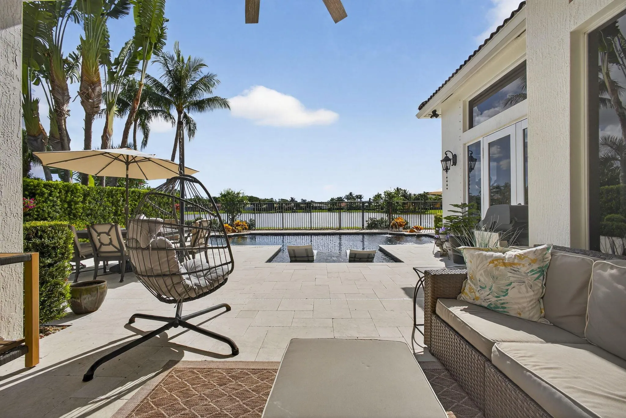 Your dream home is here! Just minutes from Wellington’s equestrian venues, upscale shopping, fine dining, top schools, and premier medical facilities, this stunning 4-bedroom, 3-bath home with a private office and 3-car garage offers unmatched luxury. Walls of glass showcase lake and pool views, while the kitchen and custom bioethanol fireplace provide elegance and comfort. The primary suite is a serene retreat with water views, and the resort-style pool with sun shelf and deck jets makes outdoor entertaining effortless. Open living spaces, abundant natural light, and expansive outdoor areas define South Florida living–perfect for those seeking style, privacy, and convenience. Schedule a tour today!