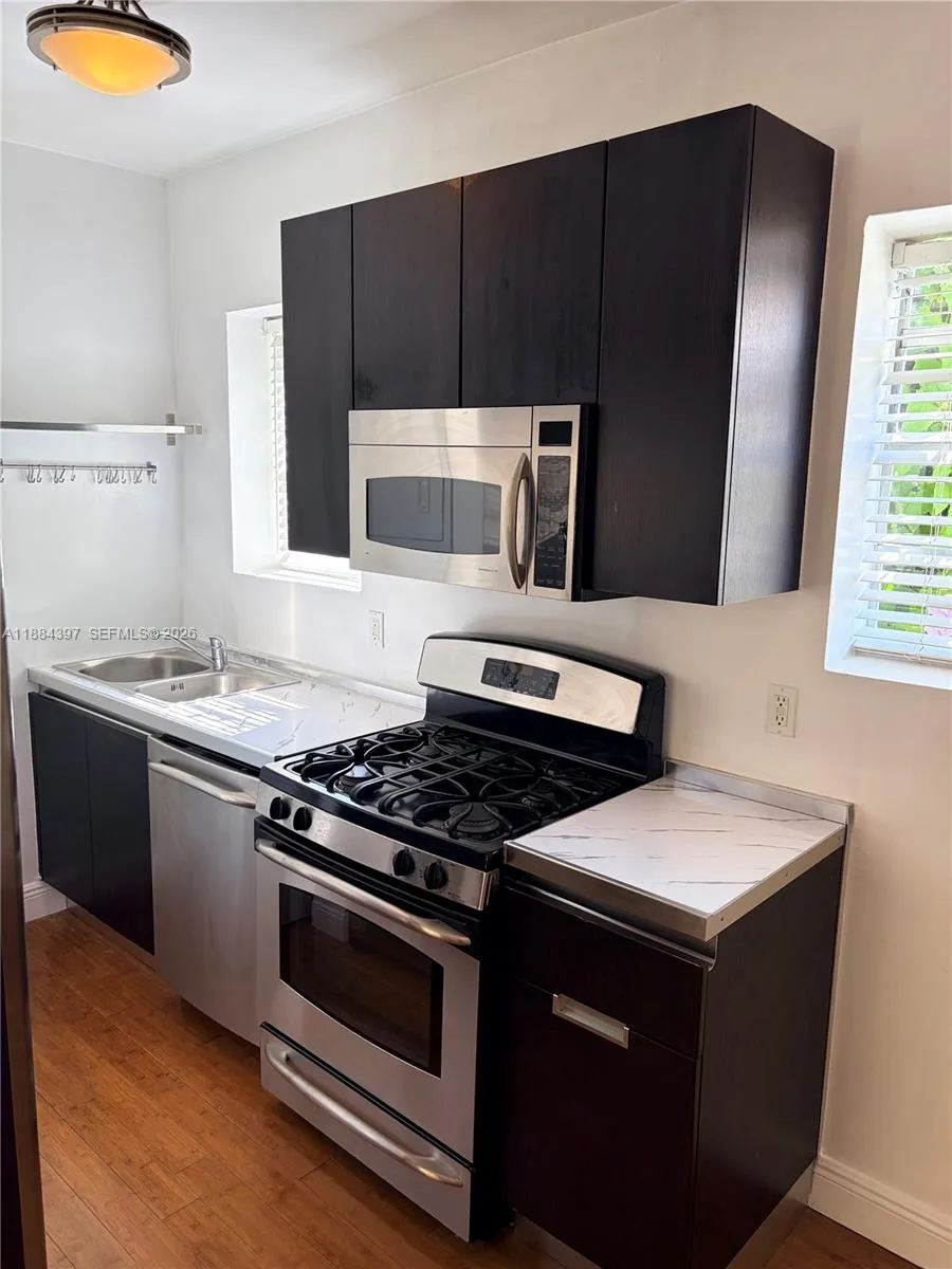 Charming waterfront building nestled between large mansions on quiet and prestigious Pine Tree Drive. This truly feels like living in a home; only 24 units in the complex which features a large deck/patio and pool right on the water; kayak or paddle board at your whim. A bright living room followed by a den/office space, dining area followed by the kitchen. Bedroom with large walk in closet. Washer and Dryer inside the unit and 1 gated parking space included. There’s also guest parking for short term visits. Absolutely quiet serene living in the heart of a peaceful neighborhood located exactly within a 5 minute bicycle ride to the beach and various restaurants shopping of the 41st street corridor. Less than a 10 minute drive to South Beach. UNFURNISHED 12 MONTHS MINIMUM