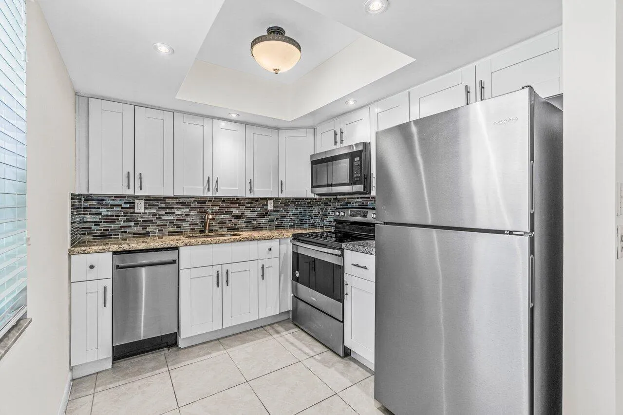 Beautifully updated first floor condo in 55+ Kings Point. The kitchen features granite counter tops and like new stainless steel appliances. Tile flooring runs throughout the condo. Beautifully updated bathrooms. Full sized washer and dryer in the unit! Flat ceilings. Kings Point features a clubhouse with two 18 hole golf courses, pool, tennis, and exercise studio. Gated community with security and shuttle system.