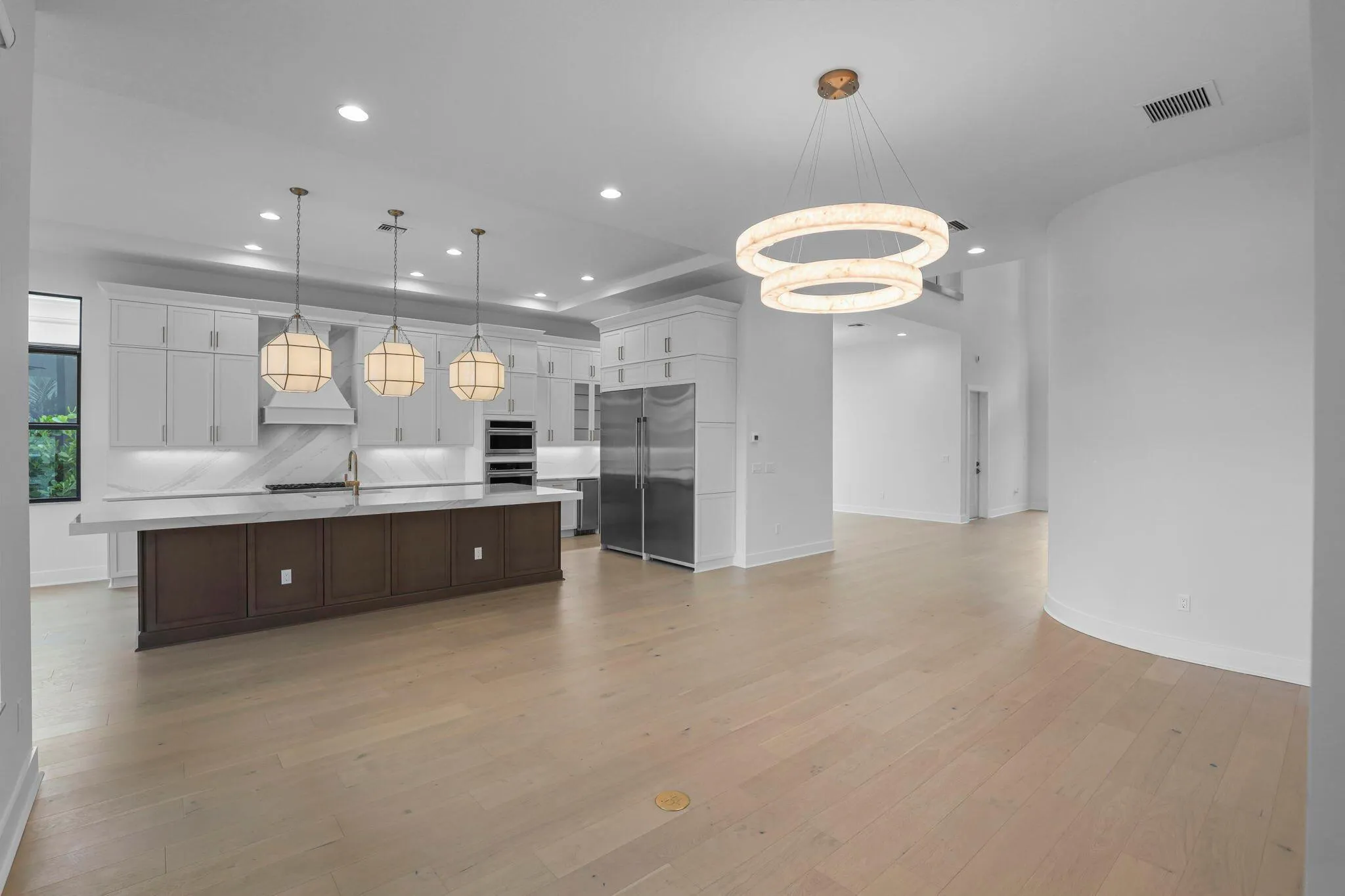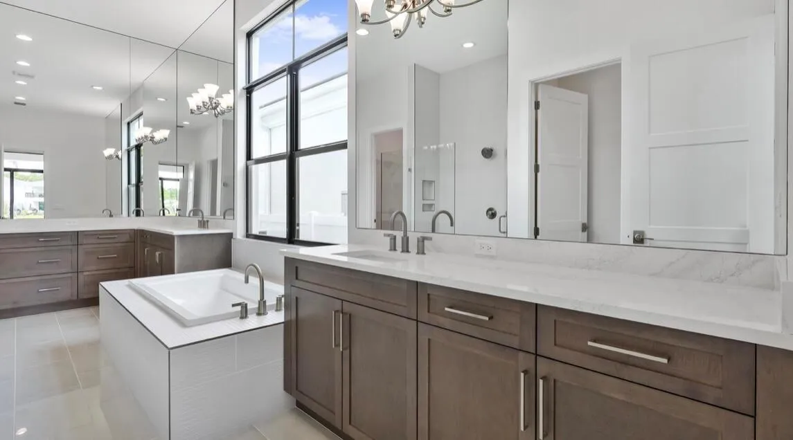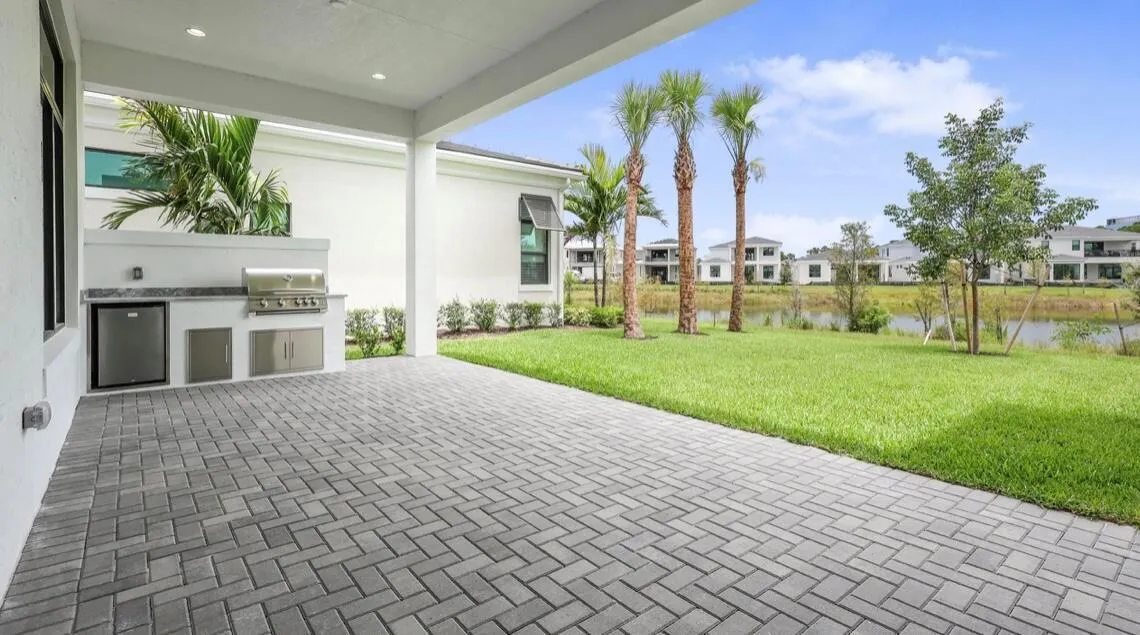 Discover the pinnacle of modern elegance in this never-lived-in West Model, perfectly situated within the exclusive gates of Artistry. From the moment you enter the soaring two-story foyer, you’ll be captivated by the sophisticated design and thoughtful craftsmanship throughout. The expansive gourmet kitchen is a chef’s dream, featuring GE Monogram appliances, dual 42-inch refrigerators, gas cooktop, 3-inch quartz countertops, wine cooler, ice maker, and a spacious walk-in pantry. The open-concept living area includes a warm and inviting custom built fireplace with the same luxury flooring throughout. The first-floor owner’s suite offers stunning water views, a coffered ceiling, a free-standing soaking tub, dual shower heads, and an oversized walk-in closet. Upstairs opens to the spacious