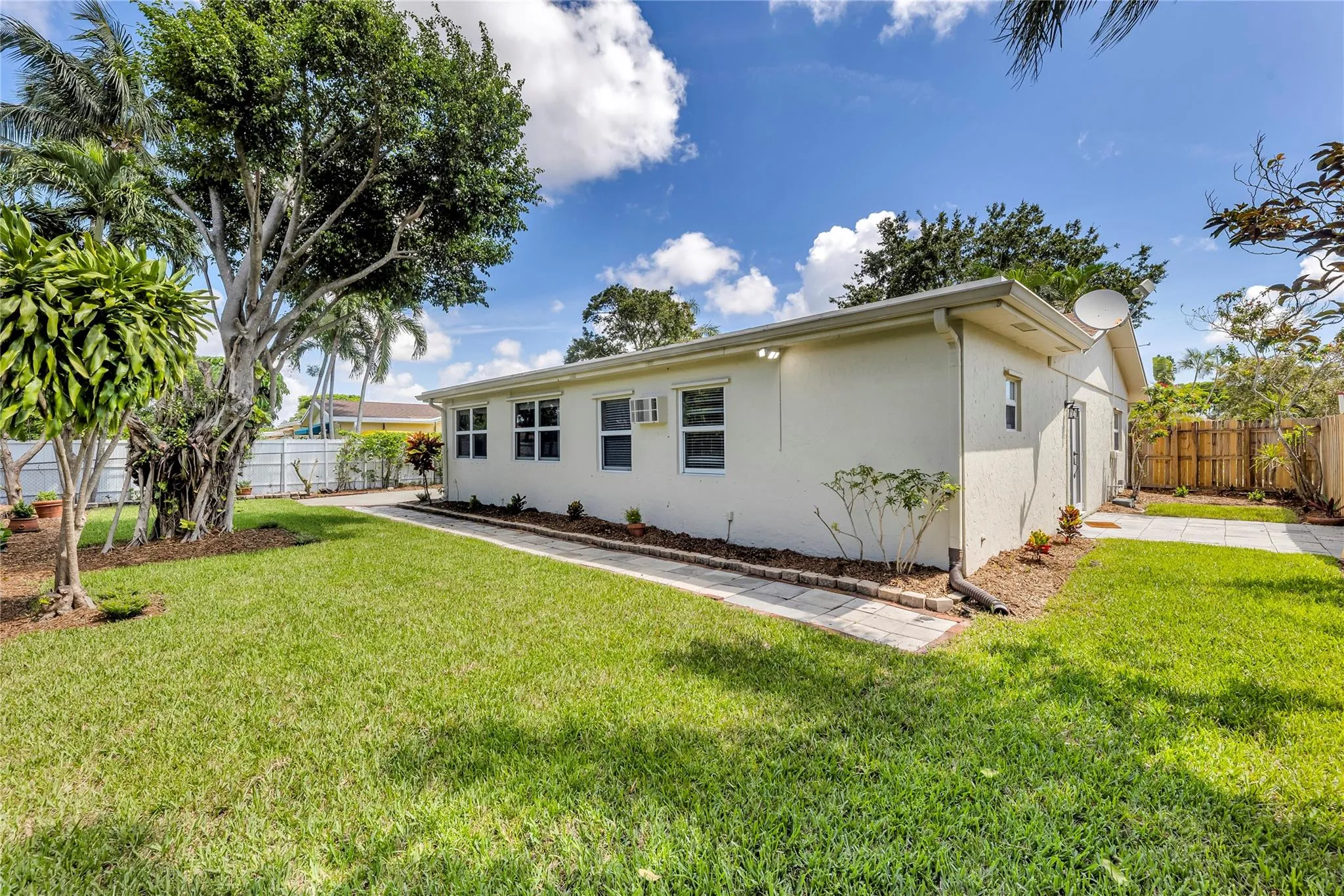 Welcome to this bright and airy 4-bedroom, 3-bathroom single-family home, recently refreshed with new paint and fixtures. Step inside and enjoy the security and comfort of impact windows, doors, and new ceiling fans. The kitchen is a chef’s dream, featuring sleek granite countertops, updated cabinets, and stainless-steel appliances, including a brand-new dishwasher, and a washer, and dryer. The tile floors throughout add a modern touch to the home’s inviting atmosphere. Yard maintenance and pest control are conveniently included in the monthly rental rate, ensuring a hassle-free living experience. With excellent curb appeal, this home is a true gem.