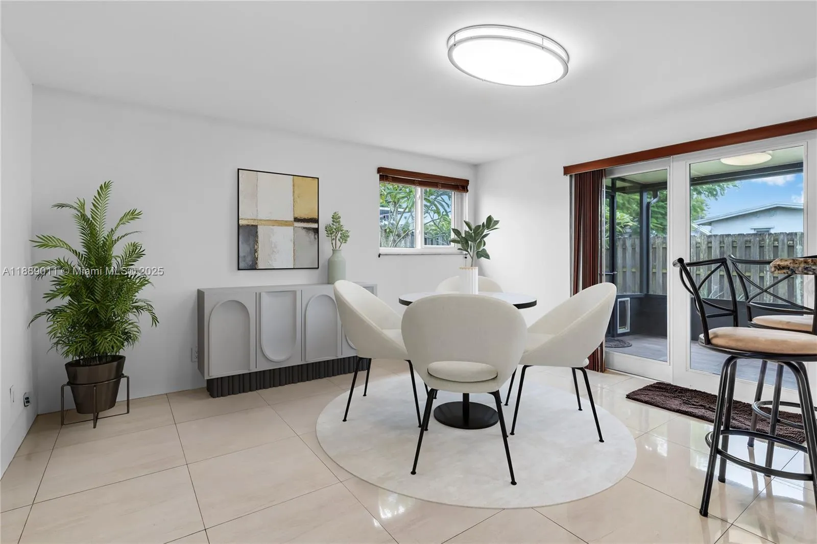 Bright and open 2-bedroom, 2-bathroom home in Sunrise featuring newer roof(2021), new PVC plumbing with permits(2025), oversized 24×24 designer porcelain tile floors, brand new refrigerator(2025), Bosch dishwasher, Whirlpool microwave, AC(7yrs old, serviced), remodeled master bath(2025), refreshed guest bath, impact windows & doors, washer/dryer(6 yrs old) smart home system with security cameras and freshly painted inside & out. Fruit trees(banana,loquat,citrus,pineapple) and orchids. The home has been tented with a transferrable 1yr warranty. Enjoy a spacious kitchen w/cherrywood cabinets, granite counters, breakfast bar, stainless steel appliances and lots of closet space. The screened patio overlooks a fenced yard. Centrally located near shopping, parks, schools and easy highway access