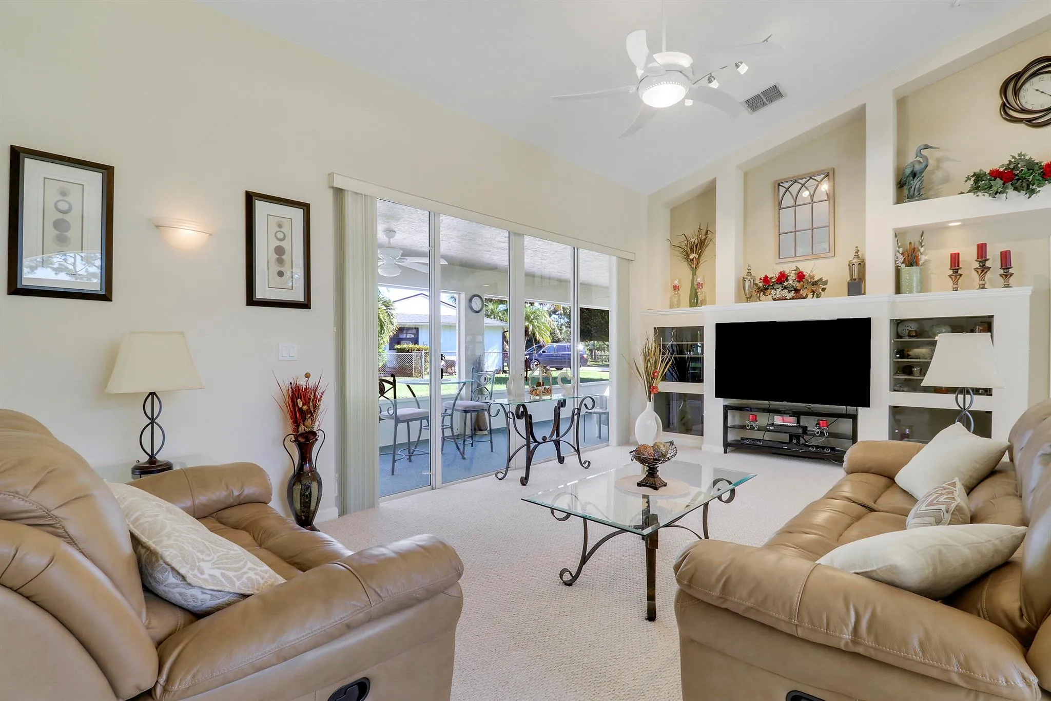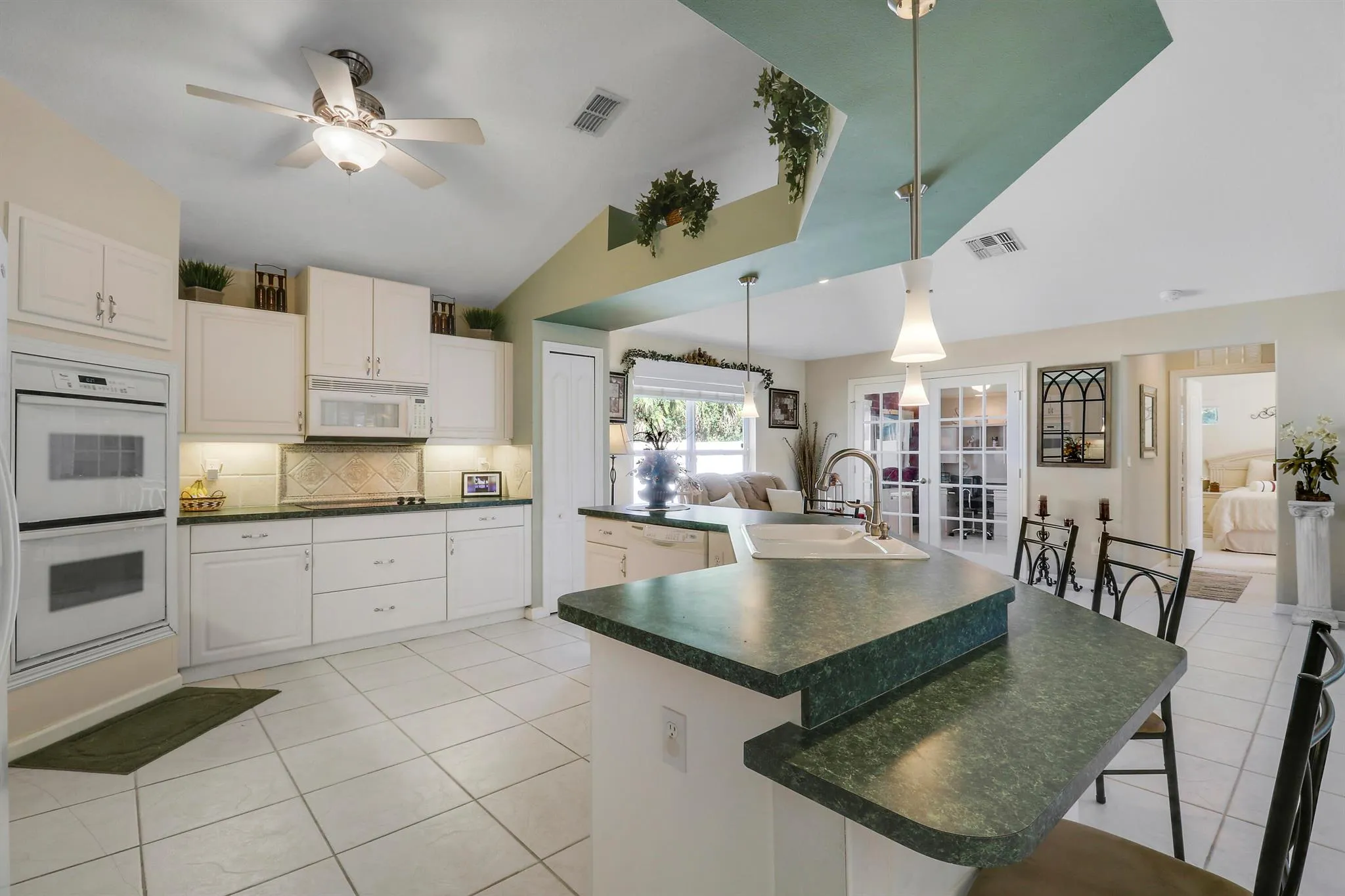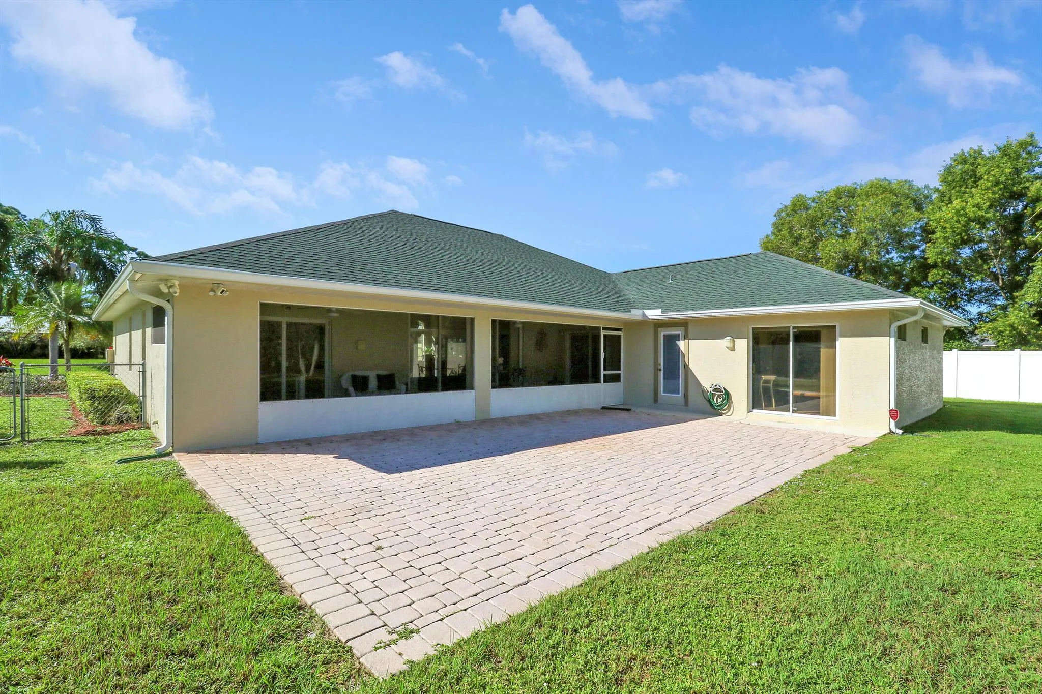 Beautiful 4 Bedroom, 2 Bath Custom Home on Nearly Half an Acre!This spacious 2,308 sq. ft. custom-built 4/2/2 home offers an ideal blend of comfort and functionality. You’re welcomed through elegant double doors into an open floor plan featuring a large living room with four sliding doors leading to an expansive covered patio — perfect for entertaining or relaxing outdoors.The chef’s kitchen boasts double ovens, plenty of counter space, and overlooks the main living area. The master suite includes sliding doors to the patio, two large walk-in closets, a tray ceiling with crown molding, and a luxurious bath with dual sinks and a soaking tub. The second bedroom also has its own slider to the patio, while the fourth bedroom features a cozy nook for a closet.
