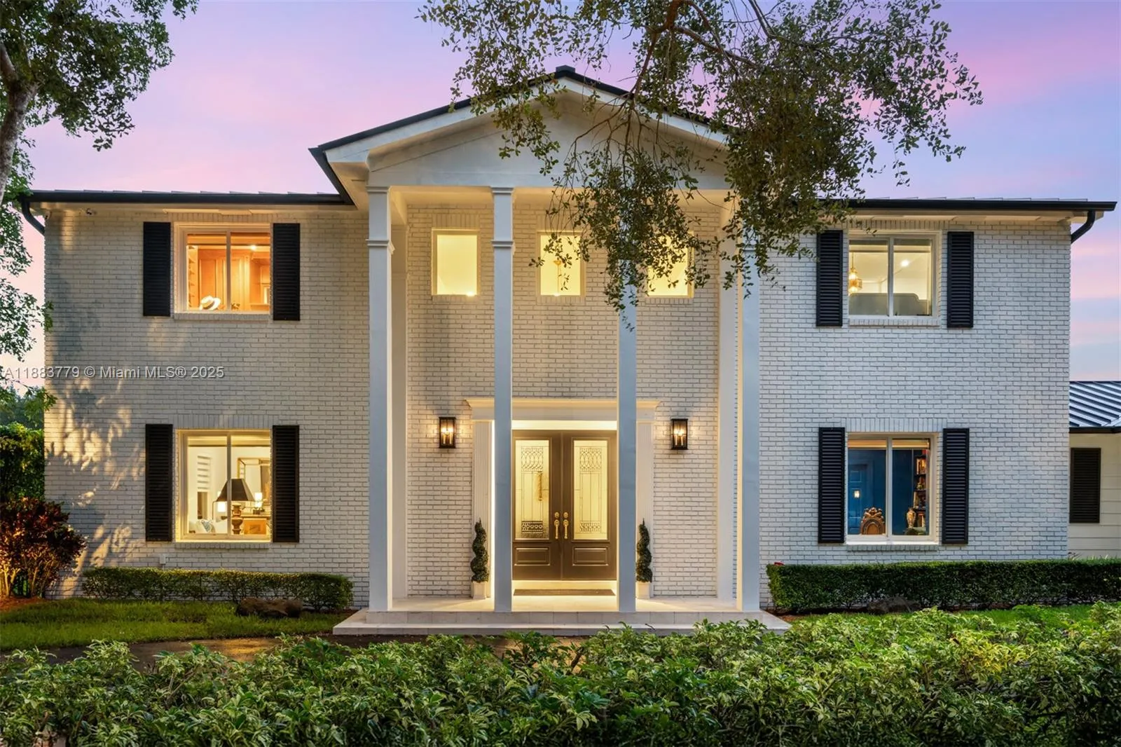 Set on a 21,344 sq ft lot, this stately Colonial-style estate seamlessly blends timeless architecture with modern sophistication. Recently renovated, it offers four generously scaled bedrooms, with three upstairs and one downstairs, a refined study, dual staircases, elegant detailing, and soaring volume ceilings. The gourmet eat-in kitchen is designed for both everyday living and elevated entertaining. Outdoor amenities include a summer kitchen, covered terrace, and heated pool set amid lush, manicured grounds. Additional features include a 4-year-old metal roof, impact glass, impact-rated garage door, 2-year-old generator, and pool heater.