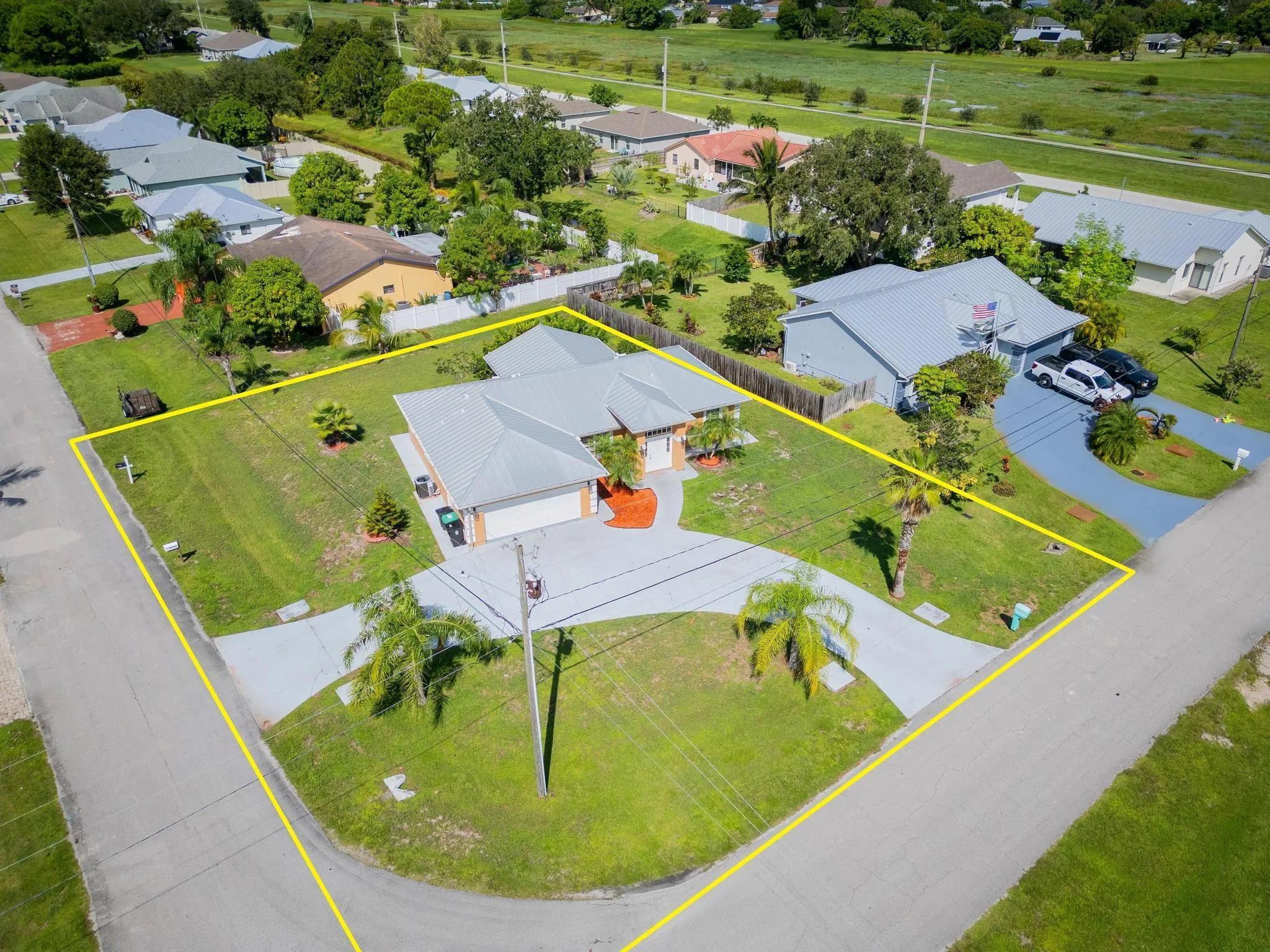 Welcome Home to this huge corner lot, 3 bedroom 2 bathroom home only minutes away from Jensen Beach! BEAUTIFUL BRAND NEW VINYL FLOORING THROUGHOUT! Stay cool with a brand new A/C installed in 2025! Open Concept Kitchen with granite bar counter top. Tons of natural light and plenty of space for entertaining! The oversized screened in patio with lush greenery surrounding it gives you the tropical paradise that you desire in an outdoor living space! Did I mention the owners suite has a private outside entrance?! Great for vacation rentals with close proximity to the beach and major shopping centers. The possibilities are endless! NO HOA!!