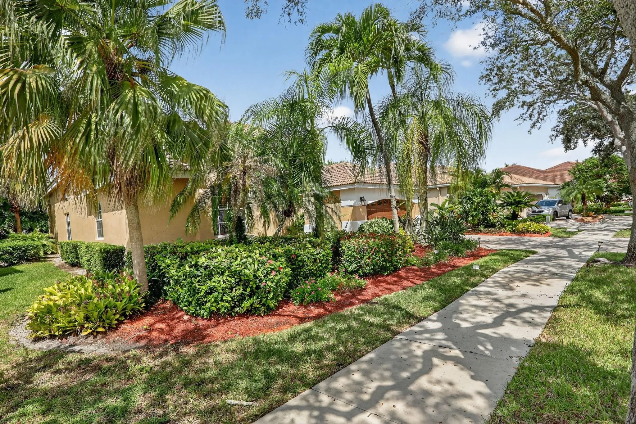 WOW! Lowest price 5BD home in Weston Hills! Shows like a model! Light, bright & airy, beautiful single-story, almost 3000sf/ac, situated on a picturesque tree-lined street. French doors with impact glass open to a crisp, freshly painted interior bathed in warm natural light, with high ceilings, brand-new LED lights & new modern chandeliers (Oct 2025). The expansive 3-split floor plan features a primary suite w/generous sitting room, great as exercise area. The large den with custom built-ins is perfect as home office. White/granite kitchen w/stainless appliances, stone backsplash, new modern hardware. Tile in all liv areas, newer luxury vinyl in bedrooms. Generous covered patio & charming private garden provides a peaceful backyard oasis. Around the corner from the comm park & golf course.