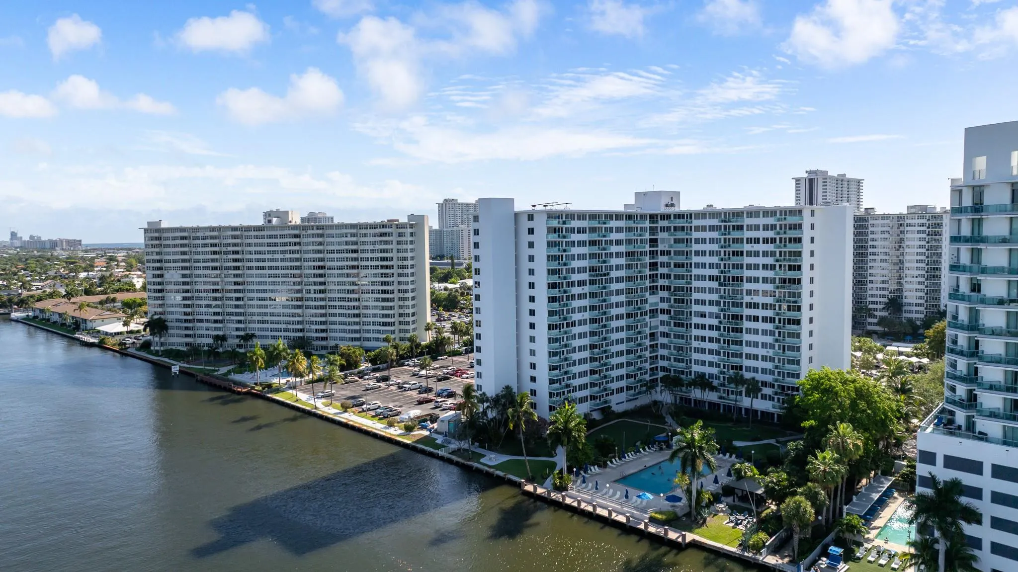Fabulous Mid-Century Classic! Two bedroom and two bathroom apartment at Coral Ridge Towers Original with incredible Intracoastal and ocean views! Ready to move in and make it your own. New hurricane impact windows and doors installed. Located across the street from the beach and close to restaurants, post office, bank, grocery shopping and the water taxi. Watch the boats and yachts pass by in the large 30 x 60 heated and cooled pool directly on the Intracoastal. Putting green, outdoor grills, and a library and just some of the amenities. Financially Stable Building with Fully Funded Reserves. Low monthly maintenance includes Cable TV, 24 hour security and on site management. 55 plus, no pets, no rentals.