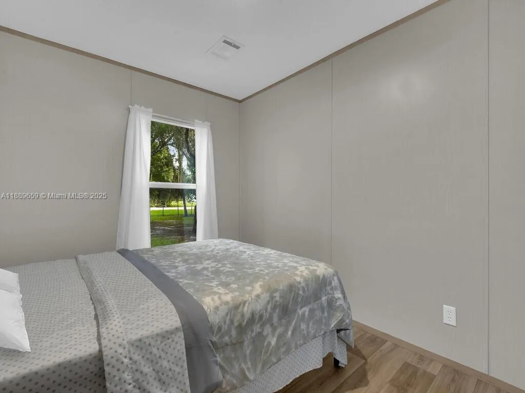 Located just outside the heart of LaBelle, this newly built 2024 manufactured home offers 3 bedrooms and 2 bathrooms on a spacious one-acre lot. The interior is bright and inviting with modern laminate floors and an open kitchen featuring bar seating and contemporary cabinetry. Step outside to enjoy peaceful evenings on the patio overlooking mature trees and a private, wooded backdrop. The property is dotted with fruit trees and provides plenty of room for outdoor activities, gardening, or simply relaxing in the quiet setting. With simple, low-maintenance landscaping and a perfect blend of modern design and rural charm, this home is an ideal retreat for anyone seeking the comfort of new construction in a tranquil country atmosphere.