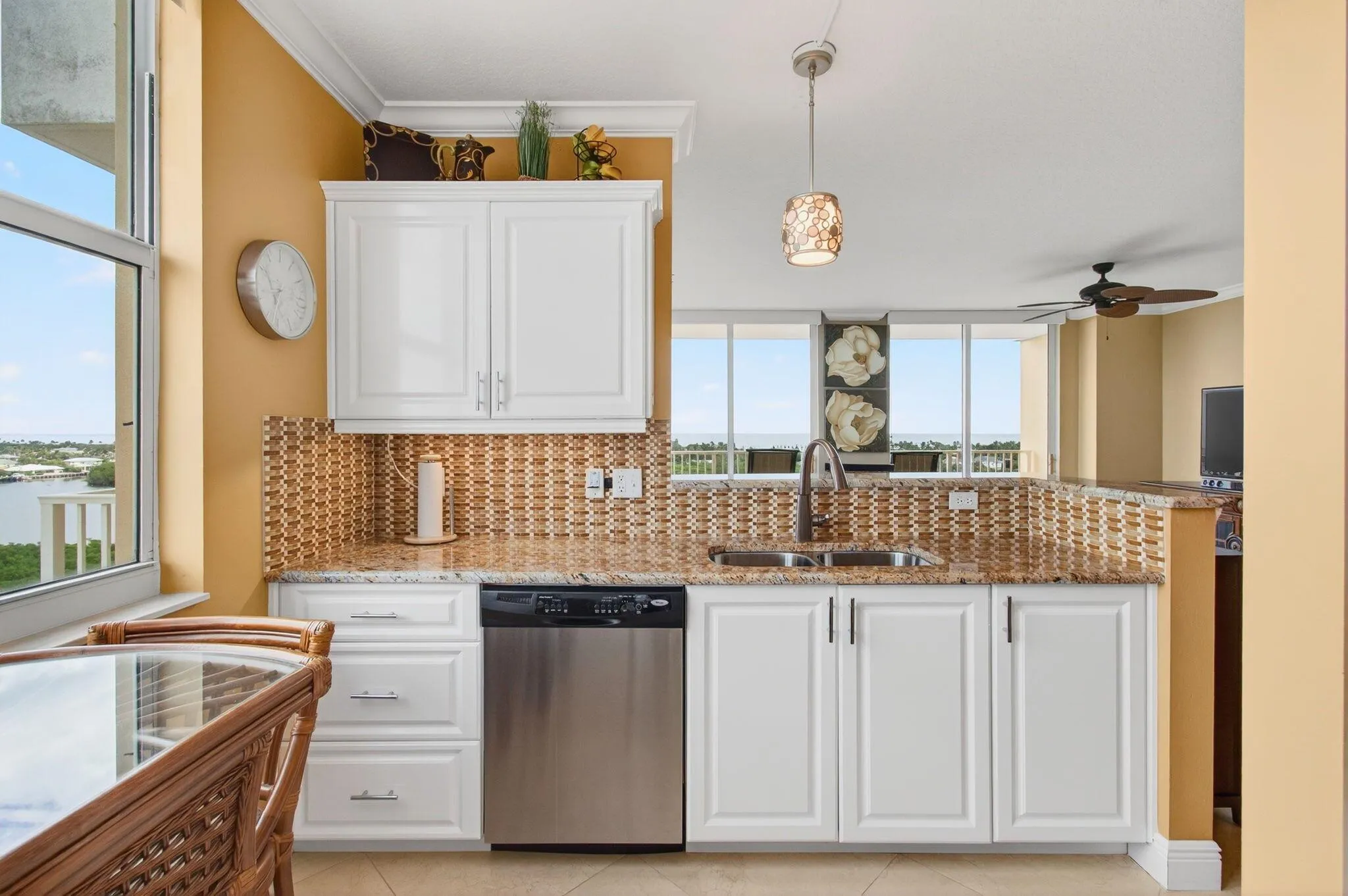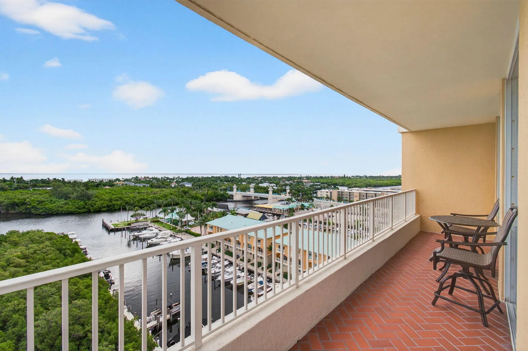 ENDLESS OCEAN AND INTRACOASTAL VIEWS from this rarely available furnished 3/2 condo in the resort style community of Marina Village. Boasting a wrap around balcony, beautiful tile floors and crown molding through out, and an updated kitchen with granite countertops. This premium positioned condo offers panoramic ocean, intracoastal and preserve views throughout. Marina Village has a dockage available for purchase or rent, fitness center, billiard room, movie theatre, business center, club room and is within walking distance to beautiful beaches, restaurants and charter fishing boats. Just minutes from Atlantic Ave and I95. This is an investor friendly building. Condo fee includes basic cable, wifi and water.