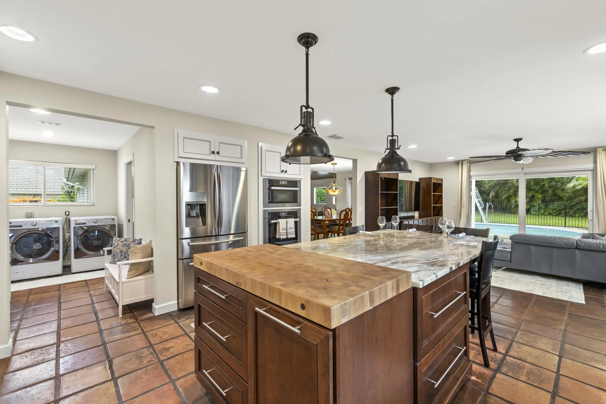 NEW PRICE! Don’t miss the chance to transform this property into your dream home. This is a rare opportunity to own just over half an acre (.56) in the highly sought-after Whispering Trails of Jupiter–with no zero lot line. Please note: Several projects throughout the home remain incomplete, and the property is being sold As-Is. Recent improvements include a 2021 roof, impact windows and sliding doors, Hardie board siding, updated kitchen island with granite and butcher block countertop. The kitchen also offers a herringbone backsplash, farm sink, and soft-close cabinetry (incomplete under sink). Resurfaced heated pool with a newer pool pump/skimmer/pool lights. AC 2023 and 2016. Water Heater 2016.The first-floor primary bedroom is unfinished, with concrete floors, & the original primary