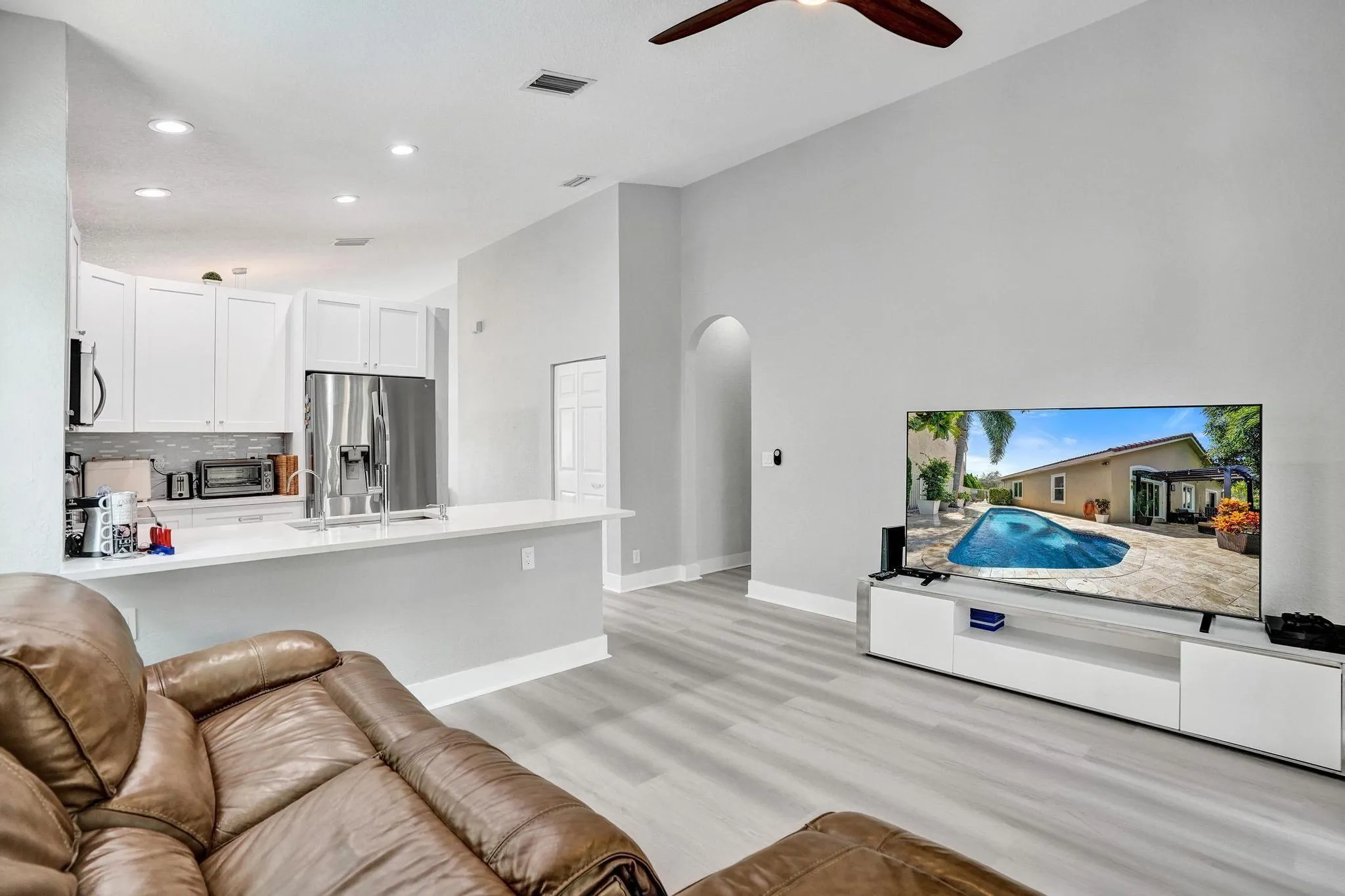 TOTALLY RENOVATED 3 BED/2 BATH POOL HOME Located on quiet private cul-de-sac in desirable gated community of Vizcaya. IMPACT WINDOWS!!! HEATED POOL RECENTLY RESURFACED with Hawaiian Blue Diamond Bright and LED LIGHT! BRAND NEW FLOORS, UPDATED BATHROOMS AND KITCHEN with NEW HIGH END STAINLESS STEEL APPLIANCES, WHITE SHAKER CABINETS, WHITE QUARTZ COUNTERTOPS WITH MODERN GLASS BACKSPLASH, FRESHLY PAINTED INTERIOR, NEWER AC UNIT, NEW WATER FILTER SYSTEM, NEW MODERN HARDWARE, NEW SPRINKLERS, VAULTED CEILINGS with NEW LED LIGHTING THROUGHOUT, NEW CUSTOM FLOOR IN GARAGE. LOW HOA includes CABLE, LANDSCAPING OF FRONT/BACK YARDS, ALARM MONITORING & Amenities: community pool, hot tub, gym, tennis courts! Great location! Good Schools, easy access to highway.