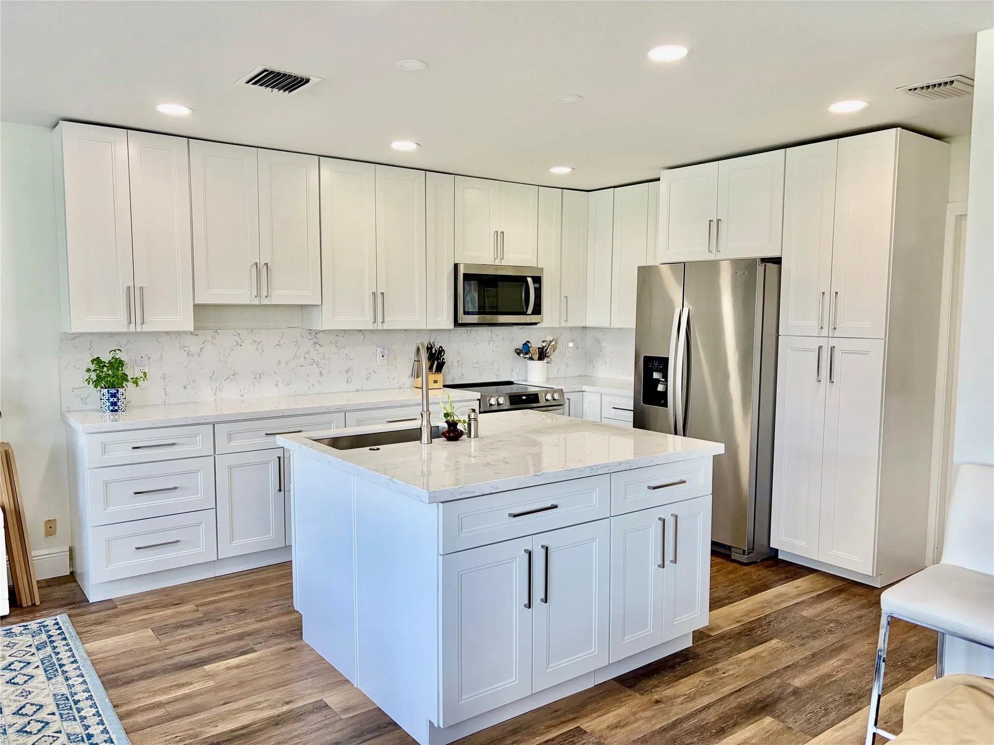 Beautifully updated 4BR/2.5BA home with nearly 2,000 sq ft of living space. Features include a raised foyer entry, modern kitchen with quartz countertops, and newer stainless-steel appliances (dishwasher & stove under 1 year old). Enjoy waterproof vinyl plank flooring, large bedrooms, and stylish bathrooms. Relax in the screened paver patio with hot tub and water views. Major updates: roof (2020), A/C (2024). Two car garage includes electric car charging outlet. Move in ready and full of modern comfort and style!