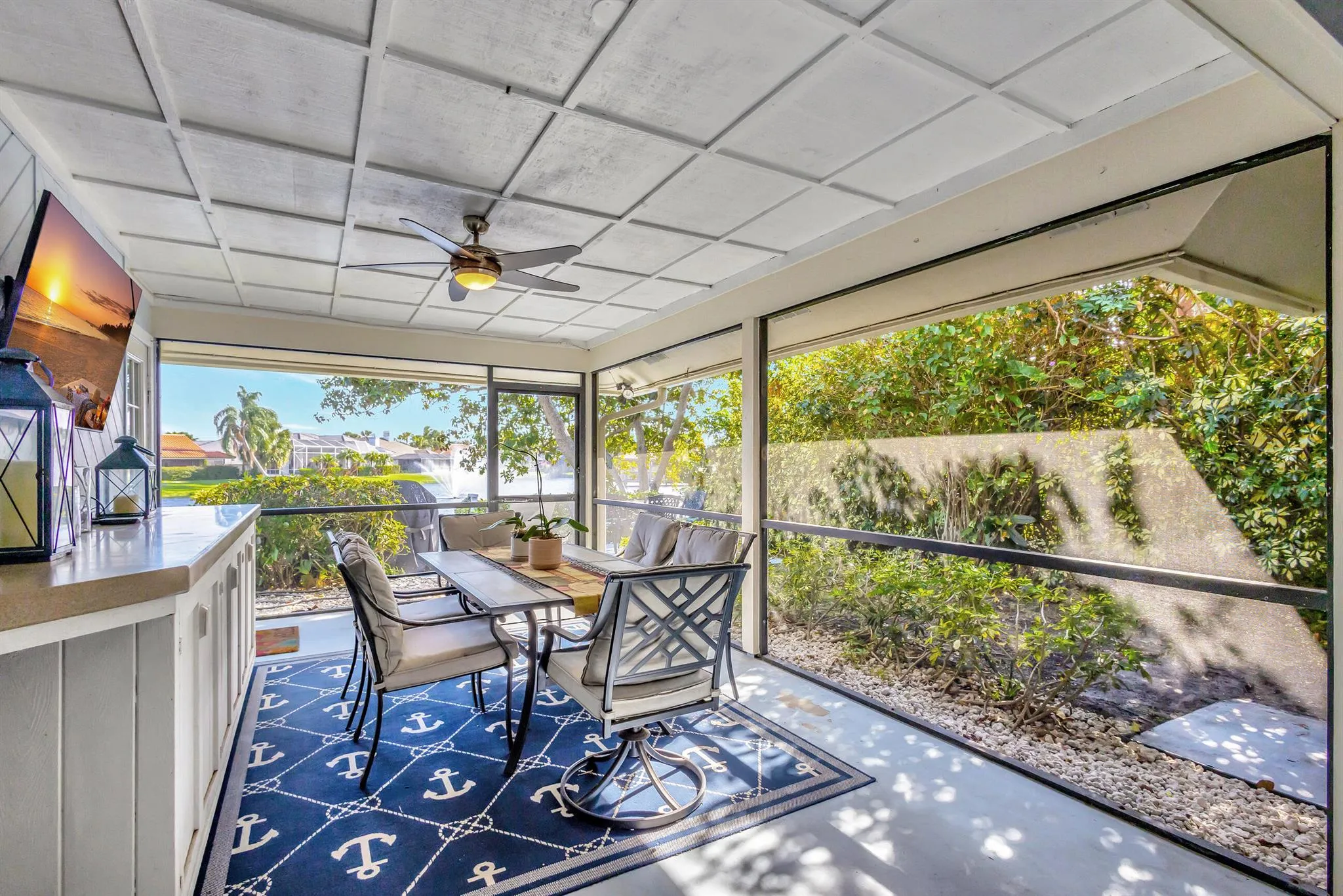 Stunning lakefront home in Frenchmen’s Landing, fully renovated in 2019 by a renowned designer! This 4BR/3BA split-plan gem features an open design with volume ceilings & panoramic lake views from the expansive kitchen-family room combo. The modern kitchen boasts white cabinetry, dual oversized islands, high-end stainless appliances, Italian granite countertops, a glass tile backsplash, & a touch-control induction cooktop. Porcelain tile floors throughout. The family room showcases a striking porcelain-tiled feature wall, ideal for a flat-screen TV & a 7-foot LED fireplace. Every room, including the Florida room, is fitted with new ceiling fans. Contemporary elegance at its finest! Don’t miss the opportunity to own this beautifully updated masterpiece!