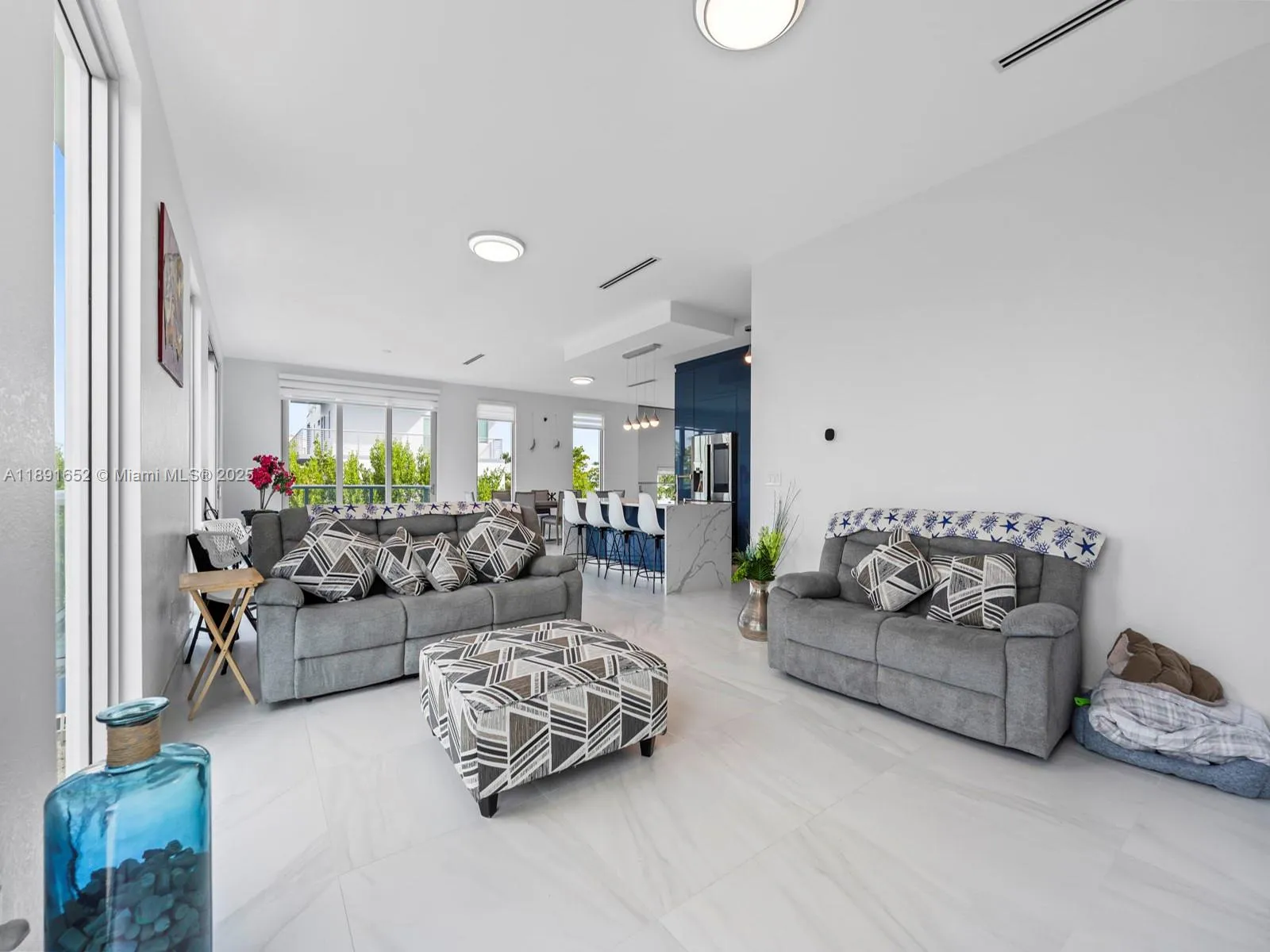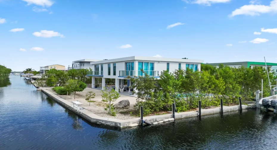 This a dreamed home this won’t last features modern concrete home It features a concrete roof Plus 6 car driveways, corner lot10k sqft with 200ft waterfront boasts panoramic views, access to the bay and ocean Enjoy a 80′ concrete dock space for boat and boat lifts until 13k pounds, plus 125ft seawall spacious BBQ, complete impact windows/doors, also provides a First floor a guest space with bedroom and one full bath, Stunning 12×35 pool with salt system and Playita.2nd floor 4 bedrooms and 3 full baths marble-finished all bathrooms, balconies in every bedroom, inside stairs with glass railings.rnThe kitchen with Quartz and island, S.S. appliances, and S.S. wall mount range hood, wine cooler. Throughout the entire house you can enjoy 10′ free height, laundry area with sink
