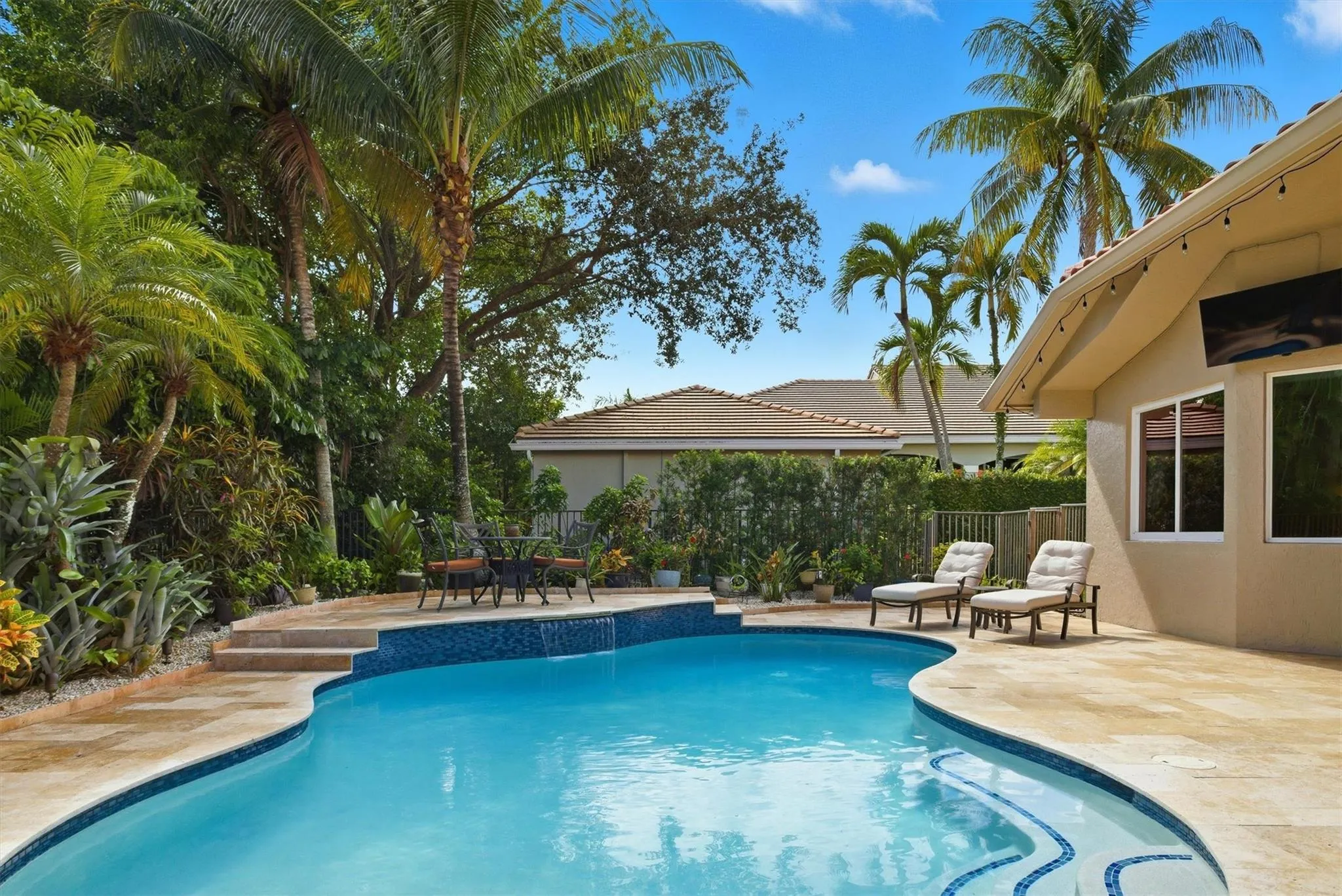 Live the dream in The Landings at Weston, a guard-gated community known for elegance and serenity. This beautifully reimagined 5-bed, 3-bath home blends timeless design with over $280K in upgrades, including a new roof, impact windows/doors, new A/C, and whole-home water filtration. Enjoy open living spaces with soaring ceilings, a gourmet kitchen, and a 3-way split plan for privacy. Step outside to your private oasis featuring a fully rebuilt saltwater pool, turfed yard, and outdoor kitchen perfect for entertaining. Zoned for A-rated schools, minutes to parks, Weston Town Center, and highways—this residence offers luxury, comfort, and peace of mind in one of Weston’s most sought-after enclaves.