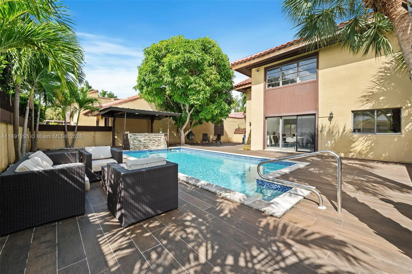 NEW ROOF!!! Largest model in California Club Homes—2-story, 3 bed, 2.5 bath with 2,149 SF of living space on a 4,706 SF lot. GATED COMMUNITY. Bright, open living and dining areas flow to a spacious kitchen. Comfortable primary suite plus two generous guest rooms. UPDATED A/C and appliances, abundant storage, and full-size laundry. PRIVATE POOL and patio for effortless indoor–outdoor living. Attached 2-car garage plus 2 driveway spaces. Convenient location with quick access to Aventura Mall, dining, and major roadways. Occupied—showings by appointment with advance notice.