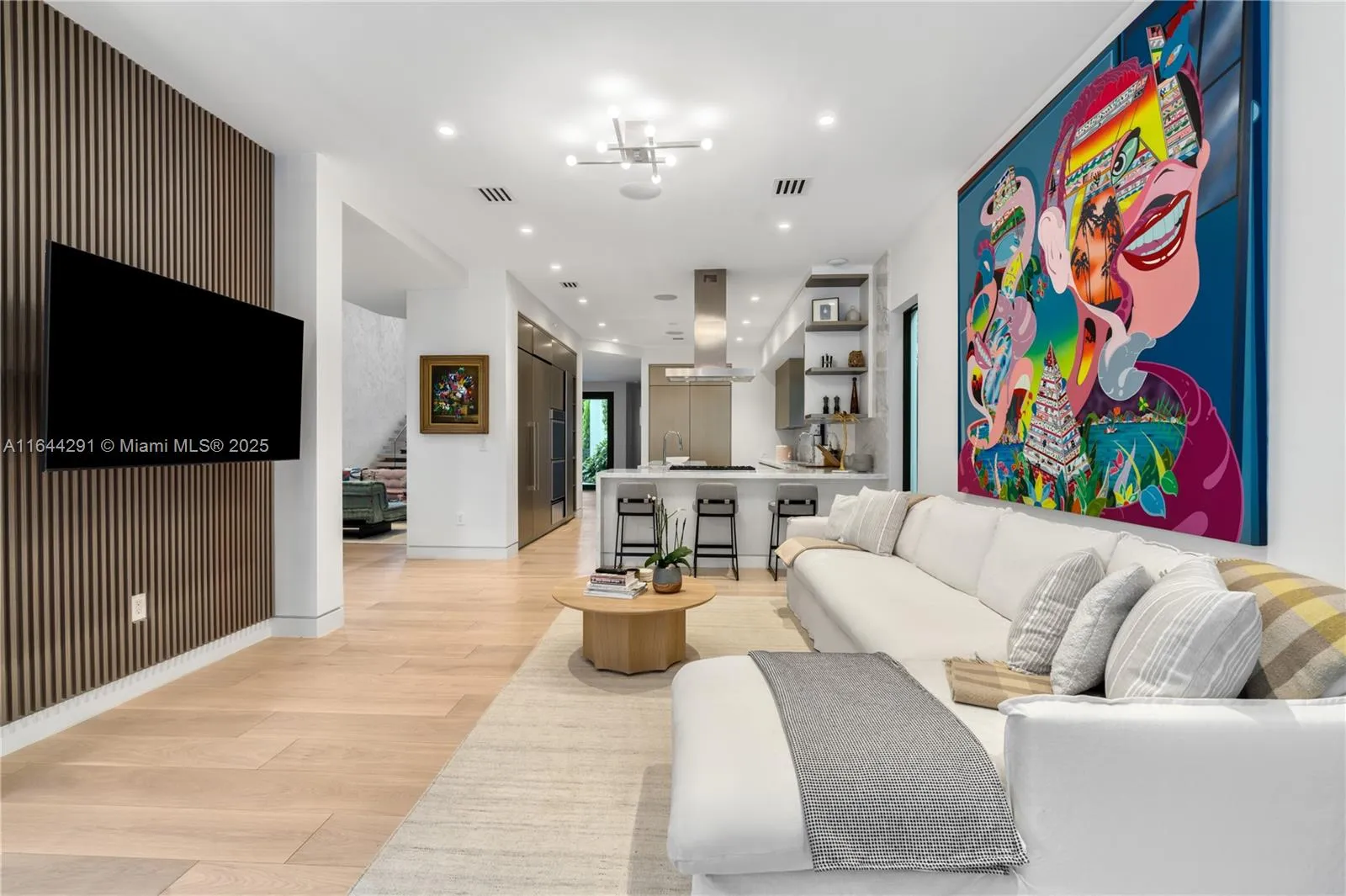 Dive into the tropical fully-renovated turnkey waterfront Modern Mediterranean villa boasts 6 beds/7 baths w/ white oak wood floors, arched doorways, floor to ceiling glass windows unveil natural light & water views. Gather by the fireplace & entertain in the living room w/ 20 ft high ceilings, a built-in bar and a kitchen with high end appliances, fridge & sink with marble countertops. Primary suite brand new custom master closets, outdoor balcony, views of the water, dual vanities & oversized soaking tub. Brand new floor to ceiling new glass doors blur the lines between interior & exterior spaces. 2 car garage. Auto-blinds offer privacy & light control as well. In the backyard there is an outdoor BBQ, pizza oven, pool & spa, sauna & cold plunge, covered terrace, new dock w/ shore power.