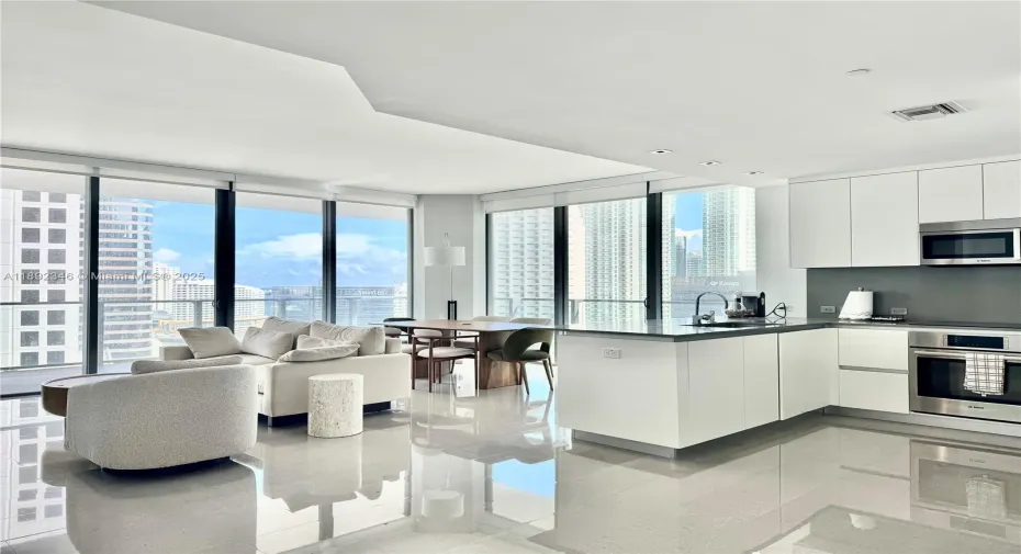 Incredible corner unit available at Reach in Brickell City Centre. 12ft ceilings, 2 bedrooms, and 2.5 full bathrooms, an exceptional layout. The living room and master bedroom are furnished with new model-style furniture. Large balconies offer stunning city views from both sides. Great location. Enjoy extensive shopping and dining options within Brickell City Centre. The building boasts hotel-like amenities, including a pool, spa, gym, kids’ club, concierge service, and valet parking.