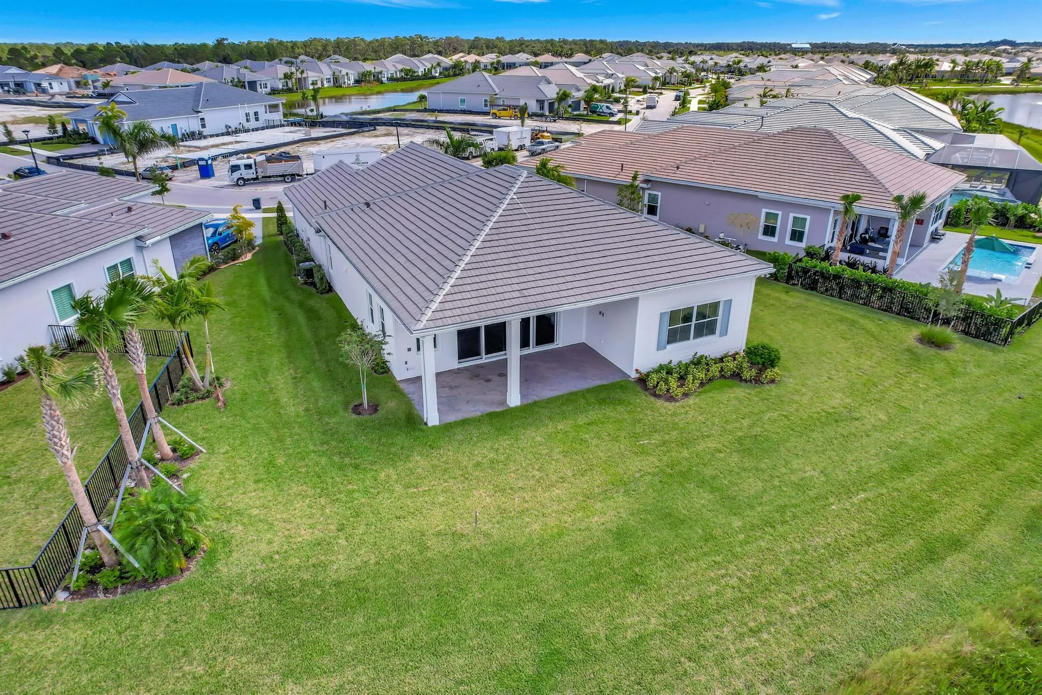 Regency at Avenir is one of Palm Beach’s newest & most exclusive gated 55+ communities. This 2979 sf home features 3 bedrooms, 2.5 baths, den/office. laundry room & 2 car garage with epoxy coated flooring. Over a 1/4 acre & situated on the lake lends to scenic views & serene sunsets from the oversized covered back patio. The most living space and one of the largest lots in the Regency along with over 100k in optional upgrades are what set this home apart from the rest. Modern luxury at every turn. From the chef friendly kitchen with quartz counters and island to the high end Italian tile and the 12 ft coffered ceilings in the great room and master suite. Master bath has dual sinks, Roman spa-like tub, large shower, water closet and luxe porcelain tile floors. Amenities galore. SEE MORE