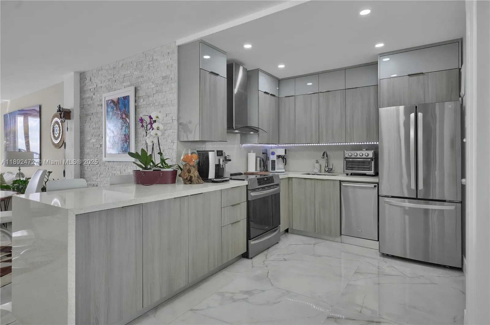 A UNIQUE with Italian Design Unit. FURNISHED or UNFURNISHED, fully renovated spacious open floor plan 1 bed + den, 2 baths south Biscayne bay & Miami skyline views condo. Unit comes with Italian kitchen w cascada quartz countertops, s/s appliances, induction stove, Brazilian porcelain new floors, Bosch air conditioner, European washing/ dryer style, new impact windows, motorized roller shade in master bedroom and blackout curtains in living room, large private balcony. Bathrooms made with Spanish and german finishes., wallpaper from Artefacto and modern white stone wall. Must see!!!!