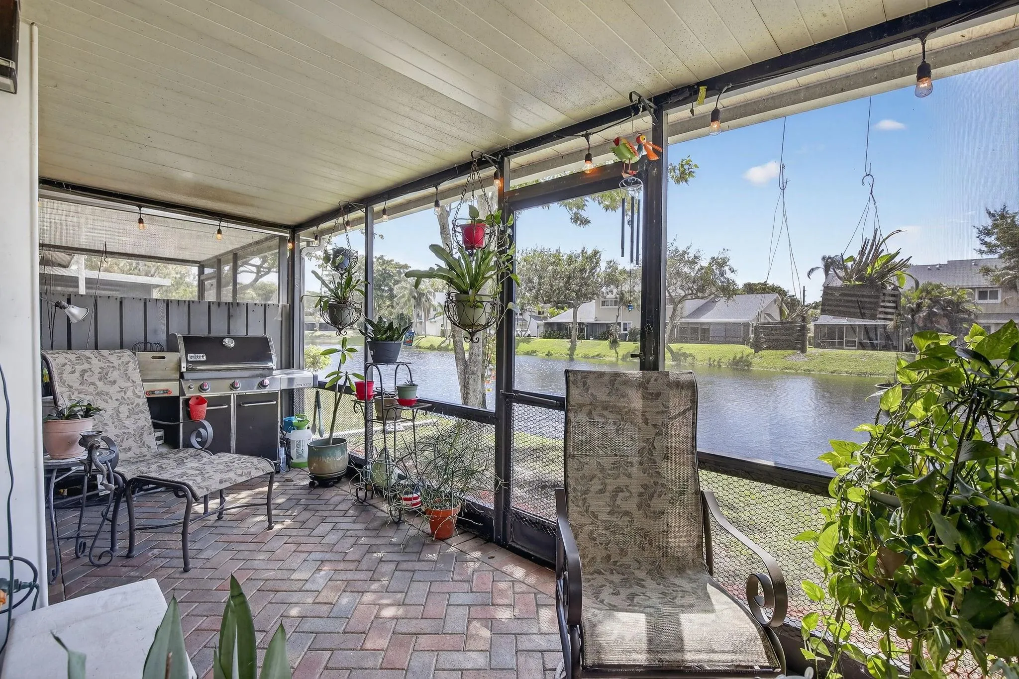 Under Contract, taking back ups! AMAZING END UNIT with EXTRA SPACE AND EXTRA PARKING! Screen porch on the LAKE and Soaring ceilings with LOFT overlooking the living room. EASILY CONVERTED to a 3 bedroom including Murphybed. Primary bedroom upstairs with en-suite and walk in closet plus wall closet ALL with CUSTOM CABINETRY. FIRST FLOOR BEDROOM with full bathroom. NEW ROOF and skylights 2023, New A/C 2025. NO carpet, wood look tile on main floor and durable LVP upstairs and on stairs 2024. Washer/Dryer 2024, NEW guest shower 2022, Interior Paint 2025, New Wood Kitchen 2018, with quartz counters and S/S appliances. Custom built bar with beverage fridge. Accordion Shutters! Pool, gym, tennis and indoor racquetball. ONLY 5 MILES to the BEACH! GREAT LOCATION with Shops and restaurants nearby.