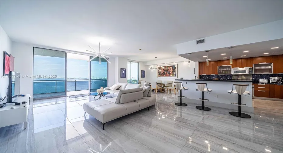 This unit stands out for its highly desirable corner location and impressive L-shaped 600 SF balcony, wrapping around both the avenue and side street. Coveted corner unit with unobstructed panoramic bay views to Miami Beach and Bal Harbour. Features an L-shaped 600 SF balcony wrapping around both the avenue and side street, offering abundant natural light and seamless indoor-outdoor living. Spacious master bedroom with bay views, walk-in closet, and elegant bath with glass shower, double sinks, bidet, and tub facing the bay. Gourmet kitchen with top appliances, 10’ ceilings, impact windows. Cable & high-speed Internet included. Building offers gym, lounge, 24hr security, jacuzzi, business center, party room, infinity heated pool. Rented furnished with modern décor and art. Easy to show.