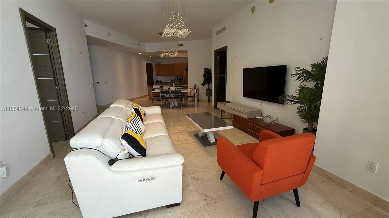 A beautifully furnished 3 Bed/3 Bath condo at the luxurious Trump Tower II in Sunny Isles Beach offering breathtaking views of the Atlantic Ocean. The property features 24×24 marble tiled flooring throughout; kitchen appliances by Bosch, SubZero and Wolf; granite countertops; Italian wood cabinetry; a master bath w/double sink vanity and Jacuzzi tub; a private elevator foyer; floor-to-ceiling glass windows/doors, and a spacious balcony spanning the width of the unit. Building amenities include a state-of-the-art fitness center & spa, two oceanfront pool w/poolside service, beachfront cabanas, an onsite restaurant, residents-only private beach access, and more. Note: the 3rd bedroom is an enclosed deb w/an ensuite bedroom. Available for 6-12 months.