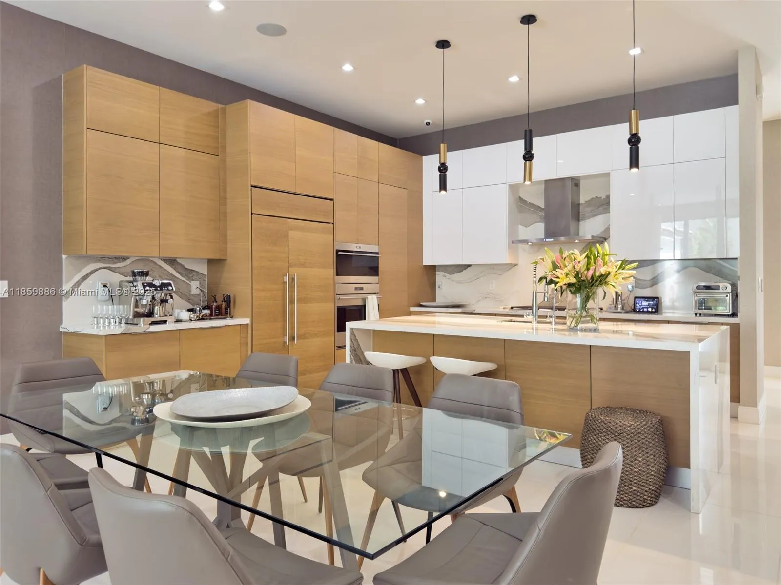 Discover this elegant 4-bed, 4 bath home in the heart of Downtown Doral. Enjoy a private pool oasis perfect for relaxing or entertaining. Every detail is professionally designed with integrated LED lighting and high-end finishes. The gourmet kitchen boasts premium appliances, a quartz waterfall island, and built-in refrigerator. Smart-home tech controls lighting and systems; the primary suite offers electric blackout curtains, private balcony, and spa-style bath. Additional bedrooms have balconies, blackout curtains, and one with en-suite bath. Spacious living, dining, and family areas flow seamlessly. Parking for up to 6 cars includes EV and golf cart charging. Impact windows. Experience the luxury lifestyle you deserve.