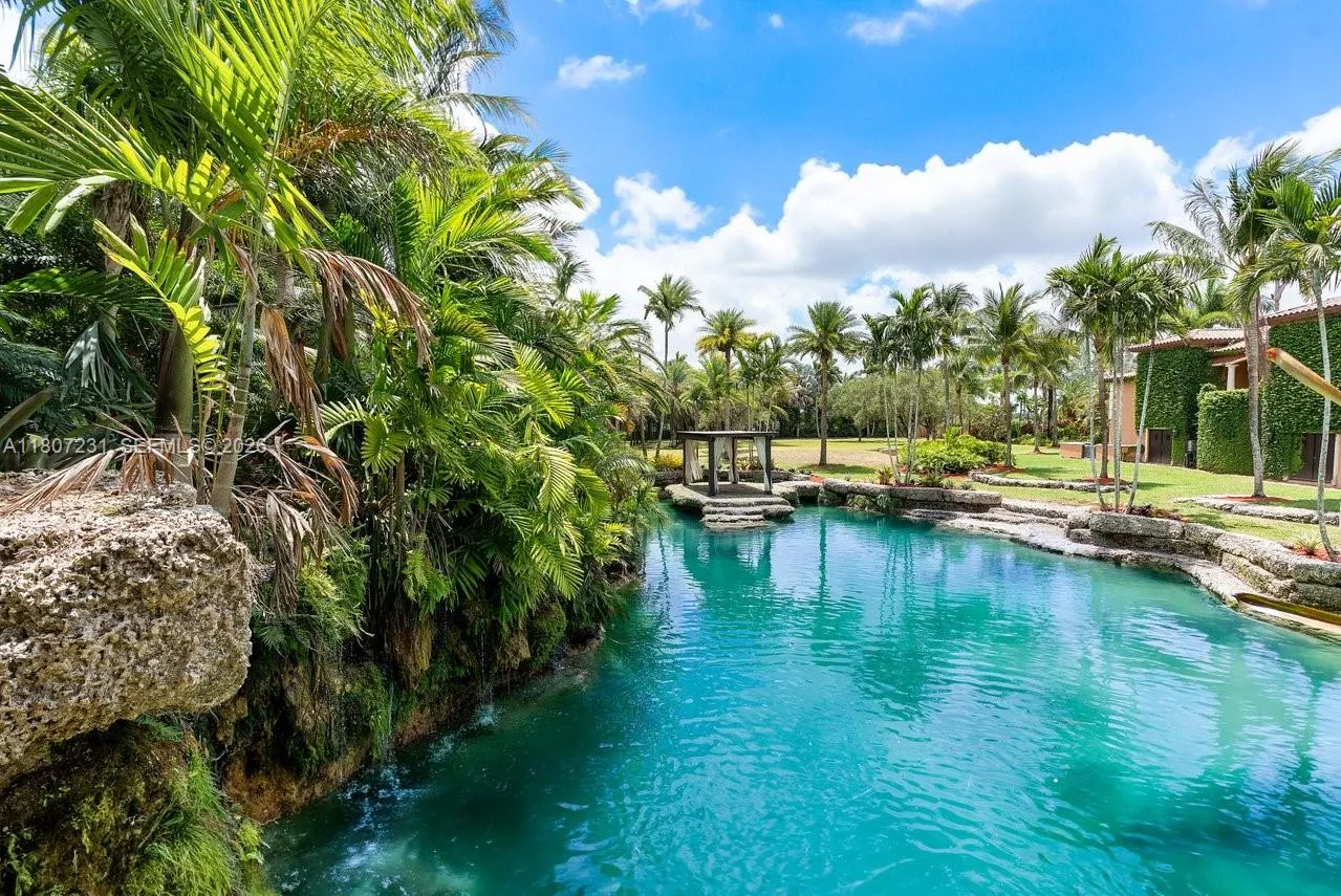 One-of-a-kind 6BD/5BA/2HB Mediterranean Redland Estate on 10 pristine acres on Redland Country Club golf course. Custom-built compound w/ 16,219 total sq ft of unparalleled luxury & functionality. Swimmable grotto w/ 10-foot cascading waterfalls, beach, & world renowned landscaping by Jungles B’s Ben Bistrong. Entertainers kitchen w/ built-in hibachi grill, butler’s pantry & breakfast nook. Crestron smart home system, impact windows, a 5-car garage, & a temperature-controlled 800-bottle wine room. In-laws/guest suite, summer kitchen, large gym, media room w/ full bar, endless storage: supply room, tackle room, & walk-in closets throughout. Ag tax benefits w/ palm tree farm. Near Redland’s best: wineries, orchid farms, fruit stands, & private airport. Short drive to Keys & MIA Airport.